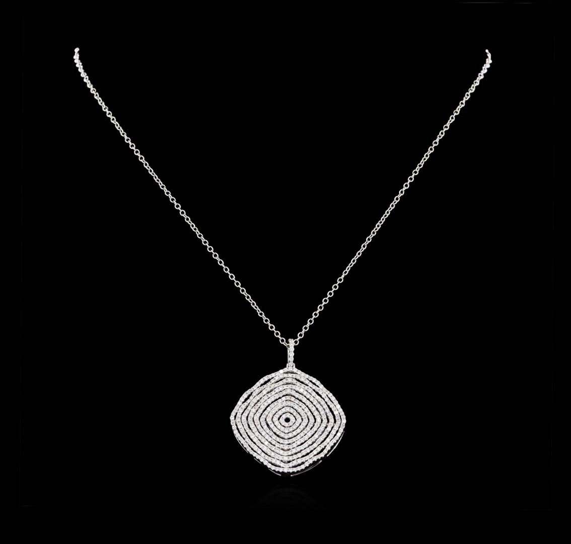 One 18KT white gold pendant and chain weighing 15.1 grams containing round brilliant cut diamonds with SI1-SI2 clarity and G-H color weighing 2.15ctw. GGA Appraised at $7,460.00.