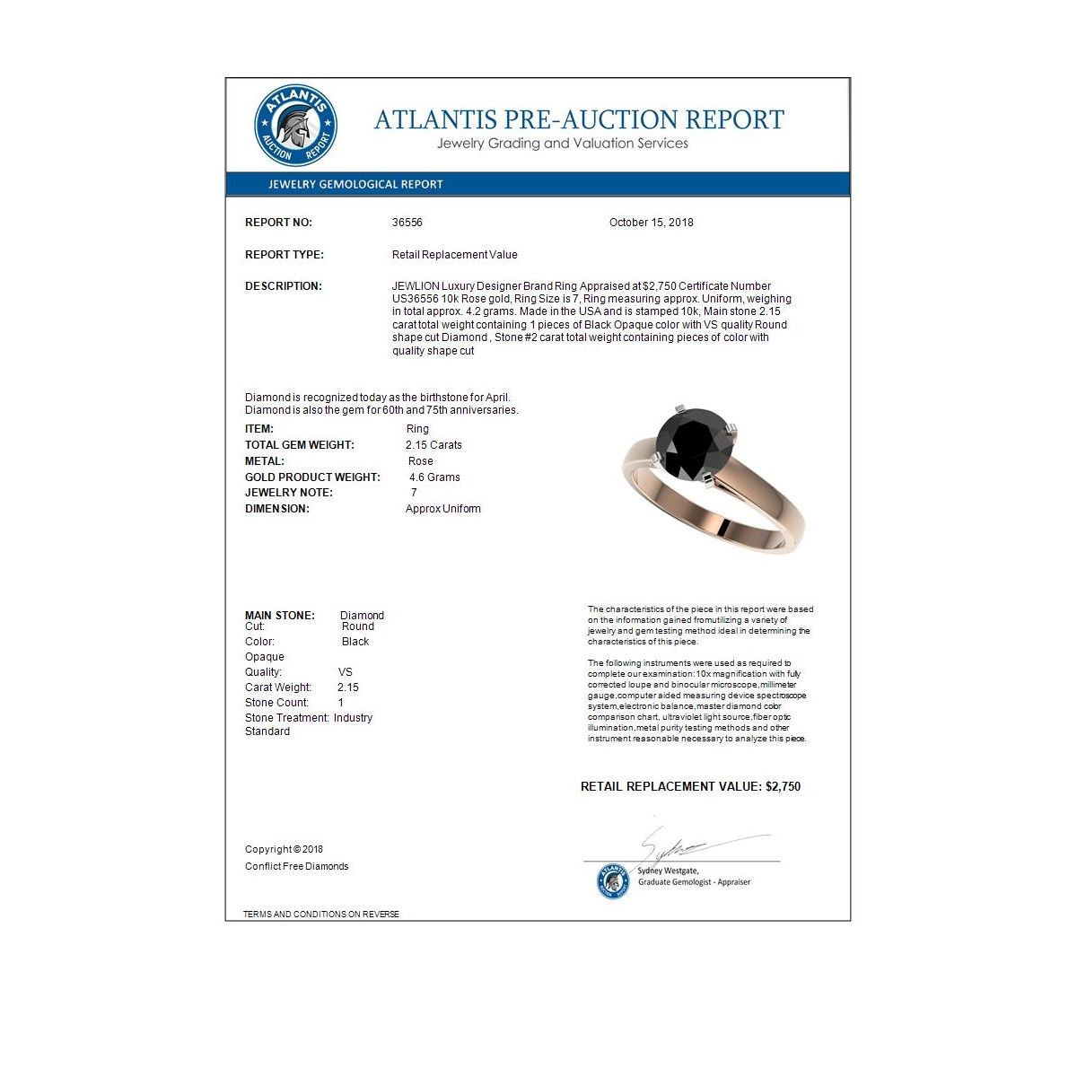 Bidders agree to pay a 19% buyer's premium added to the hammer price of the lot being auctioned. Condition reports and/or Gemological reports in Auction catalog are not guaranteed and may vary in accuracy. It is the responsibility of prospective bidders to inspect the goods. All reports, measurements, opinion of values, age and quality are offered by Oxford Auction but are not guaranteed. Neither the auction house, nor the consignor, is responsible for the accuracy of printed or verbal descriptions or its authenticity. All jewelry items sold by Oxford Auction are evaluated by third party appraisal firms where certified GIA gemologists evaluate the weight, size and grade of gemstone and/or metal to determine the replacement value of the item. Please be advised that all appraisals are done for insurance purposes only and do not determine the actual value of the jewelry on auction. The appraisals are done for the sole purpose of protecting the buyer in the event of damage or loss of purchased jewelry items from Oxford Auction. Oxford Auction is not responsible for the opinions and appraisals of any third party appraisal firms and their experts.