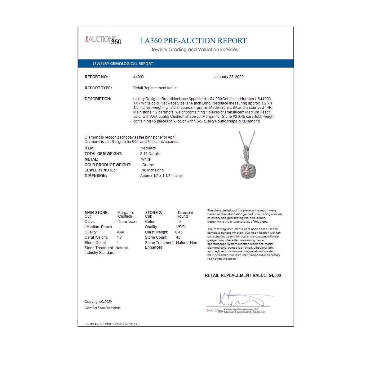 REF-86F8M - SKU: 44093 ---- 2.15 ctw Morganite & Diamond Victorian Necklace 14K White Gold