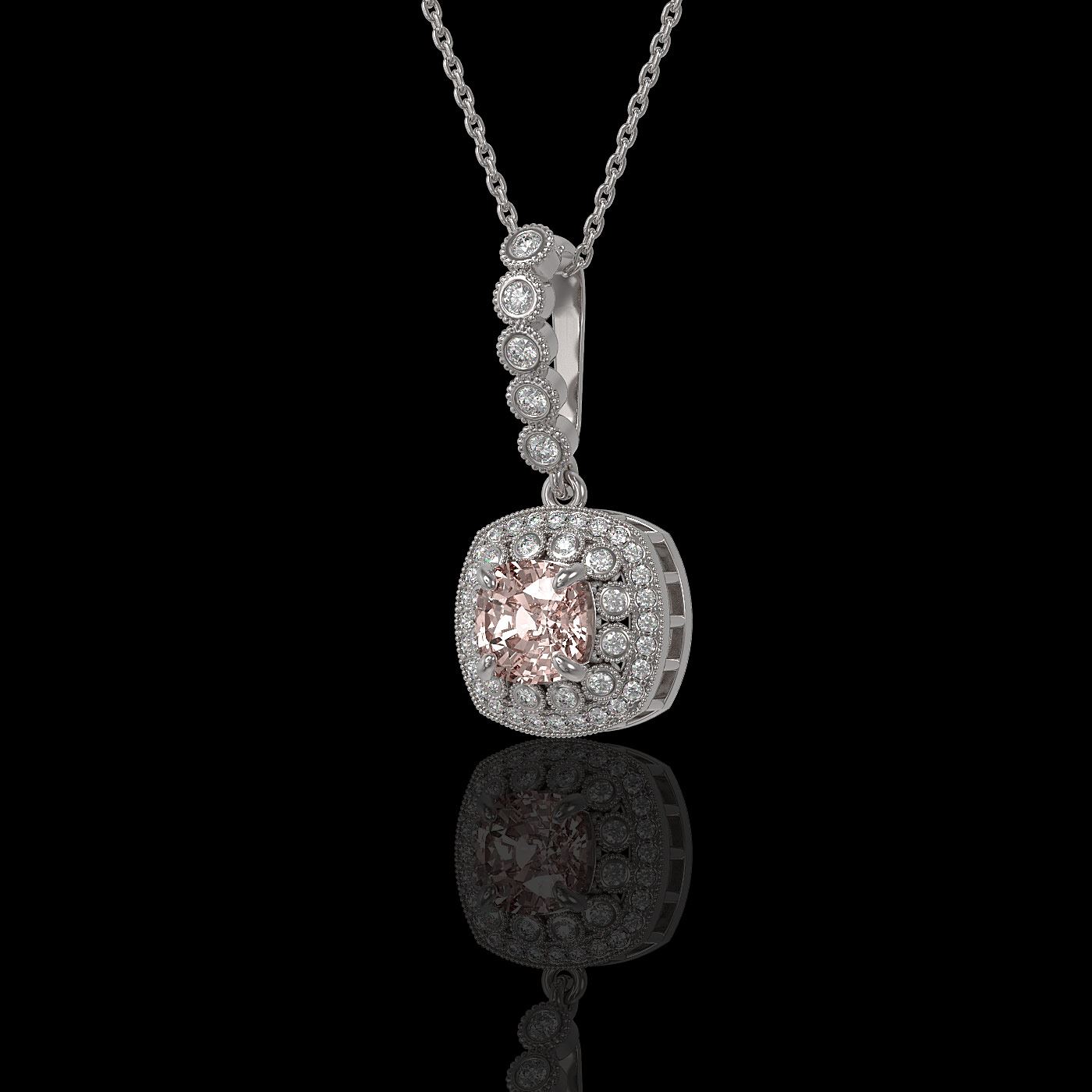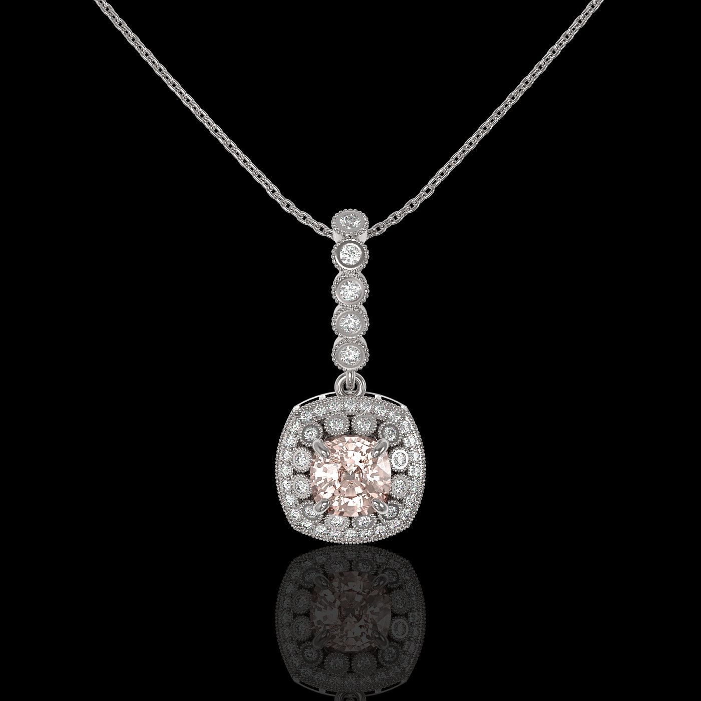 REF-86N8F - SKU: 44093 ---- 2.15 ctw Morganite & Diamond Victorian Necklace 14K White Gold