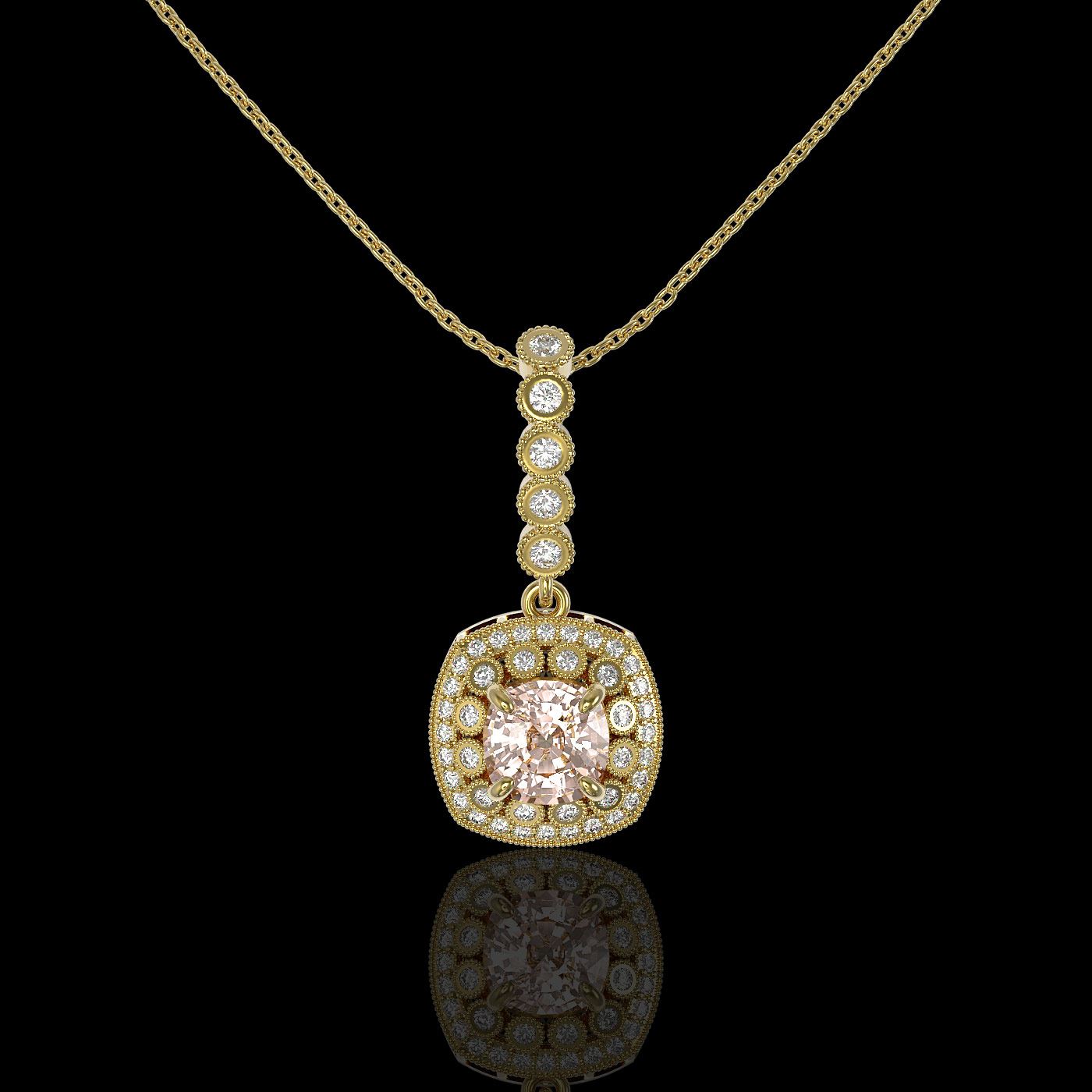 REF-86W8H - SKU: 44095 ---- 2.15 ctw Morganite & Diamond Victorian Necklace 14K Yellow Gold