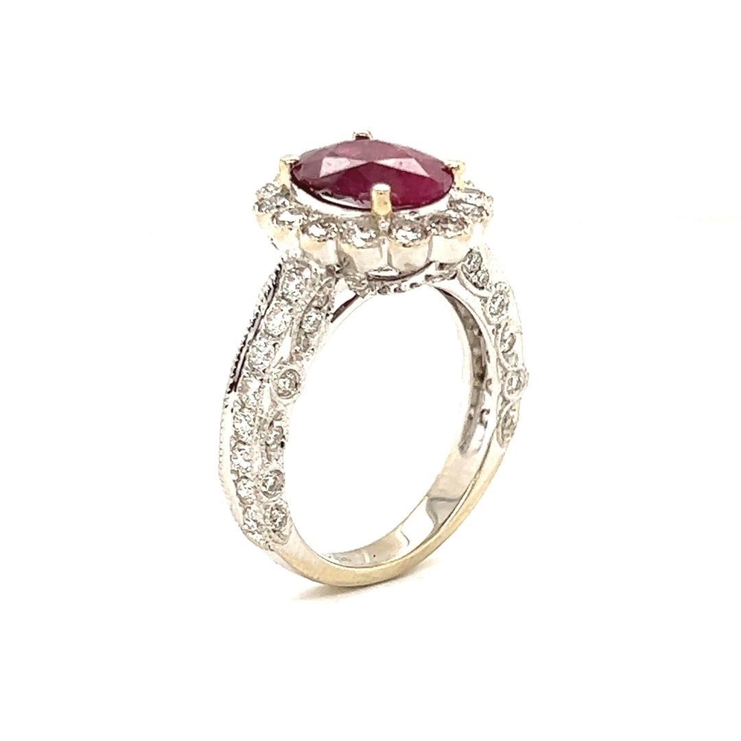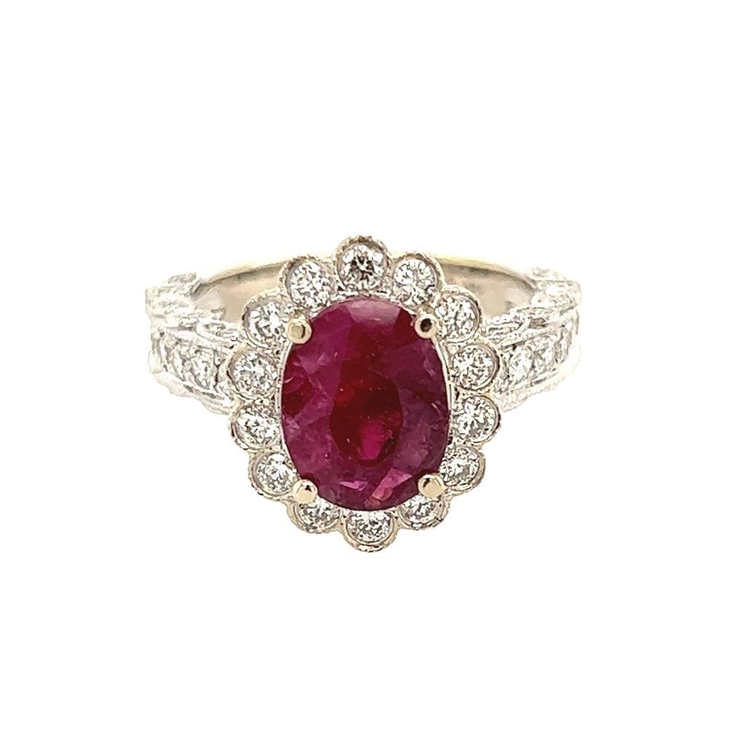 One electronically tested 14KT white gold lady's cast fashion ring with a basket halo with a bright polish with milgrain detailing finish. Condition is new, good workmanship. The featured lady's ring has a shank measuring 3.00 millimeters wide. Identified