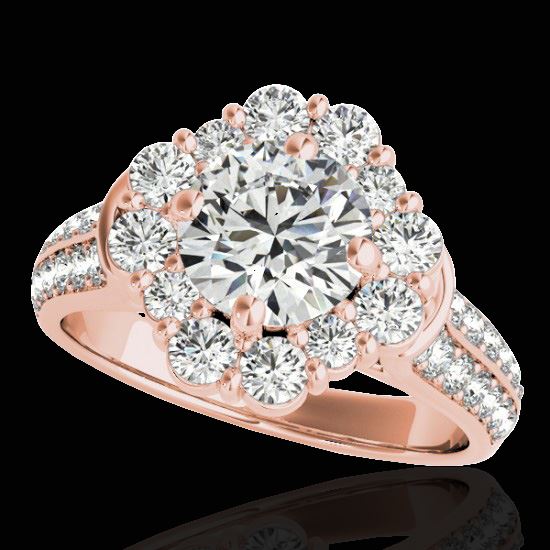 REF-208Y2K -33950 ---- 2.16 CTW H-SI/I Certified Diamond Solitaire Halo Ring 10K Rose Gold ---- Luxury Designer Brand Ring Appraised at $11,450 Certificate Number US33950 10k Rose gold, Ring Size is 7, Ring measuring approx. Uniform, weighing in total approx. 5.8 grams. Made in the USA and is stamped 10k, Main stone 1 carat total weight containing 1 pieces of H-I color with SI/I quality Round shape cut Diamond , Stone #2 1.16 carat total weight containing 40 pieces of H-I color with VS/SI quality Round shape cut Diamond