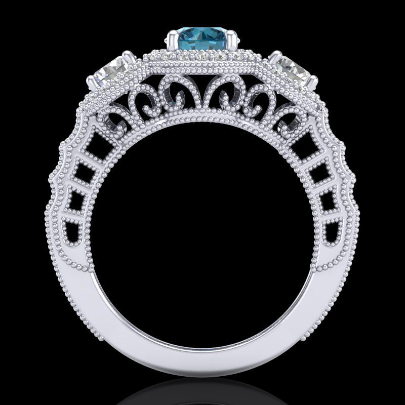 2.16 CTW Intense Blue Diamond Solitaire Art Deco 3 Stone Ring 18K White Gold ---- Luxury Designer Brand 3 stone ring Appraised Retail Price at $17,900 ---- SKU Number US37670 18k White gold 3 stone ring Size is 7, 3 stone ring measuring approx. Uniform, weighing in total approx. 12 grams. Made in the USA and is stamped 18k, Main stone 0.77 carat total weight containing 1 pieces of Intense Fancy Blue color with SI quality Round shape cut Diamond , Stone #2 0.68 carat total weight containing 2 pieces of H-I color with VS/SI quality Round shape cut