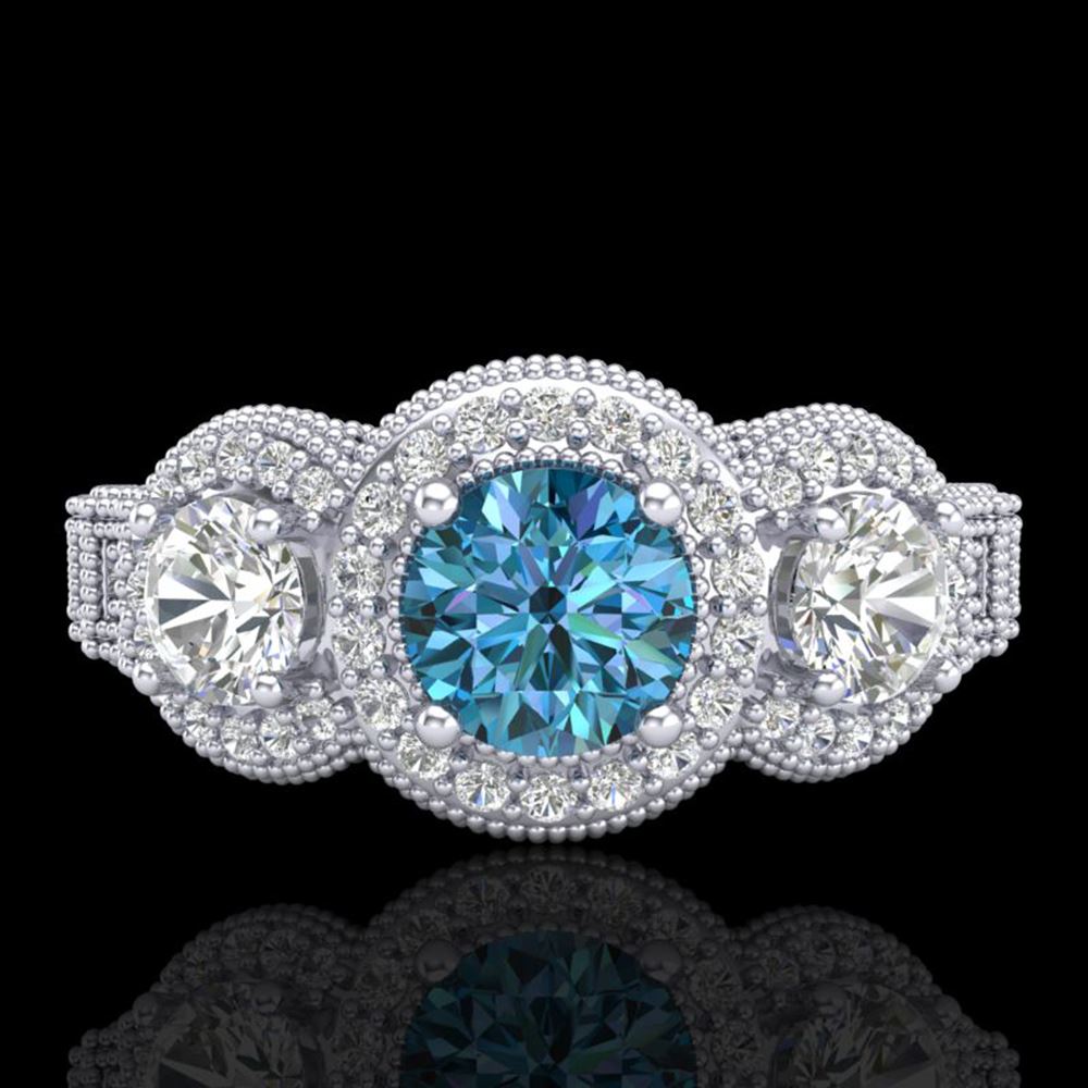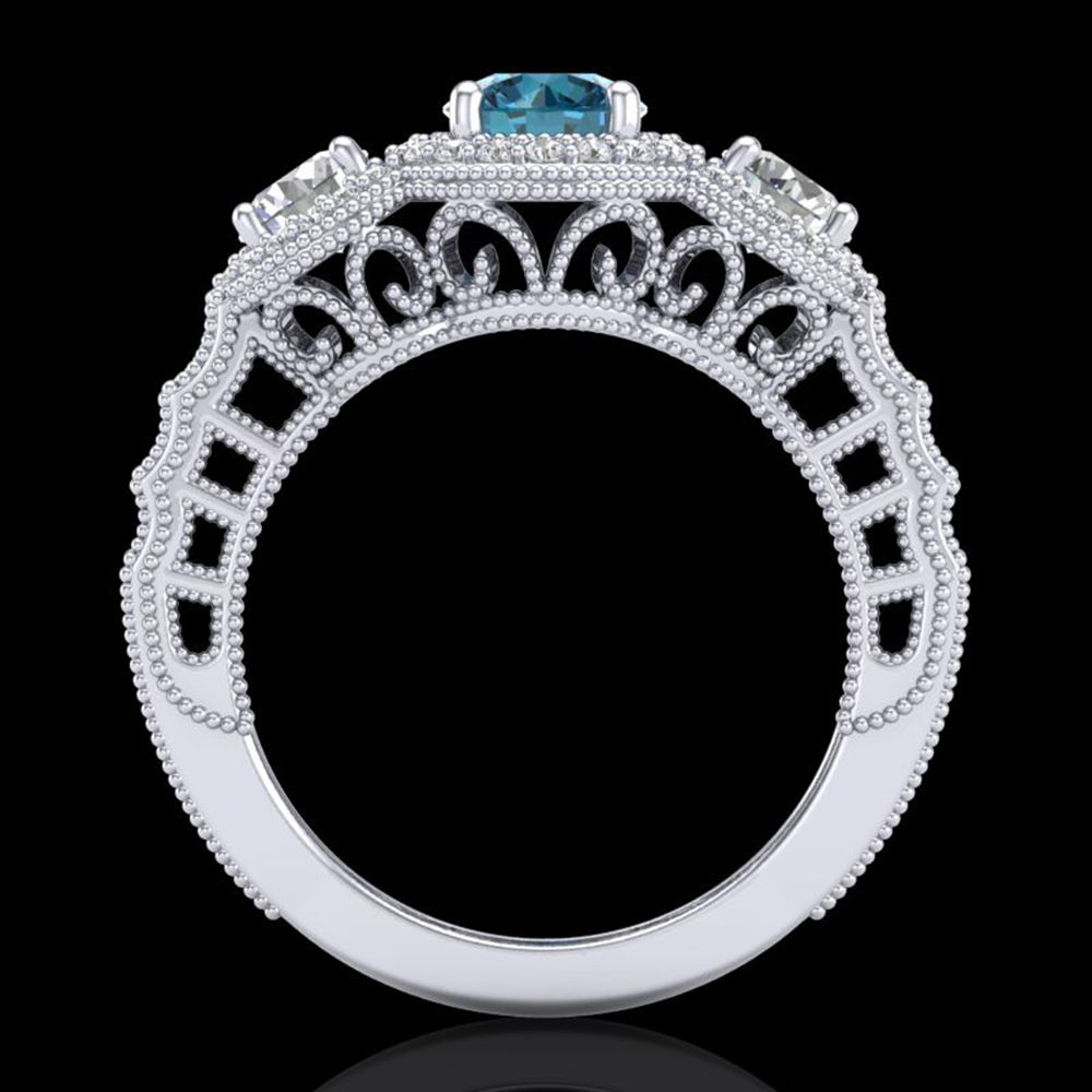 REF-270K9Y - SKU: 37670 ---- 2.16 ctw Intense Blue Diamond Art Deco 3 Stone Ring 18k White Gold