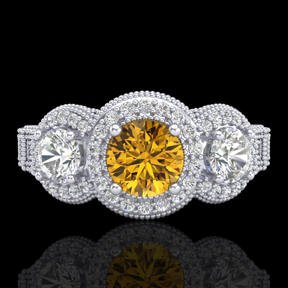 REF-270N9F - SKU: 37672 ---- 2.16 ctw Intense Fancy Yellow Diamond Art Deco Ring 18k White Gold