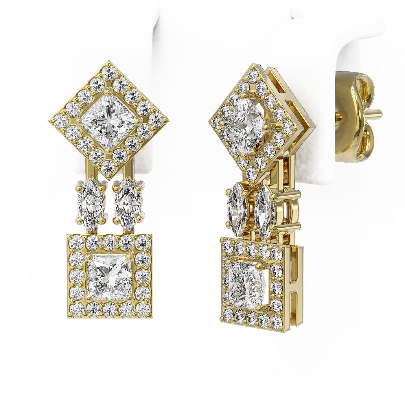 REF-267X6A - SKU: 47459 ---- 2.16 ctw Princess & Marquise Cut Diamond Earrings 18K Yellow Gold