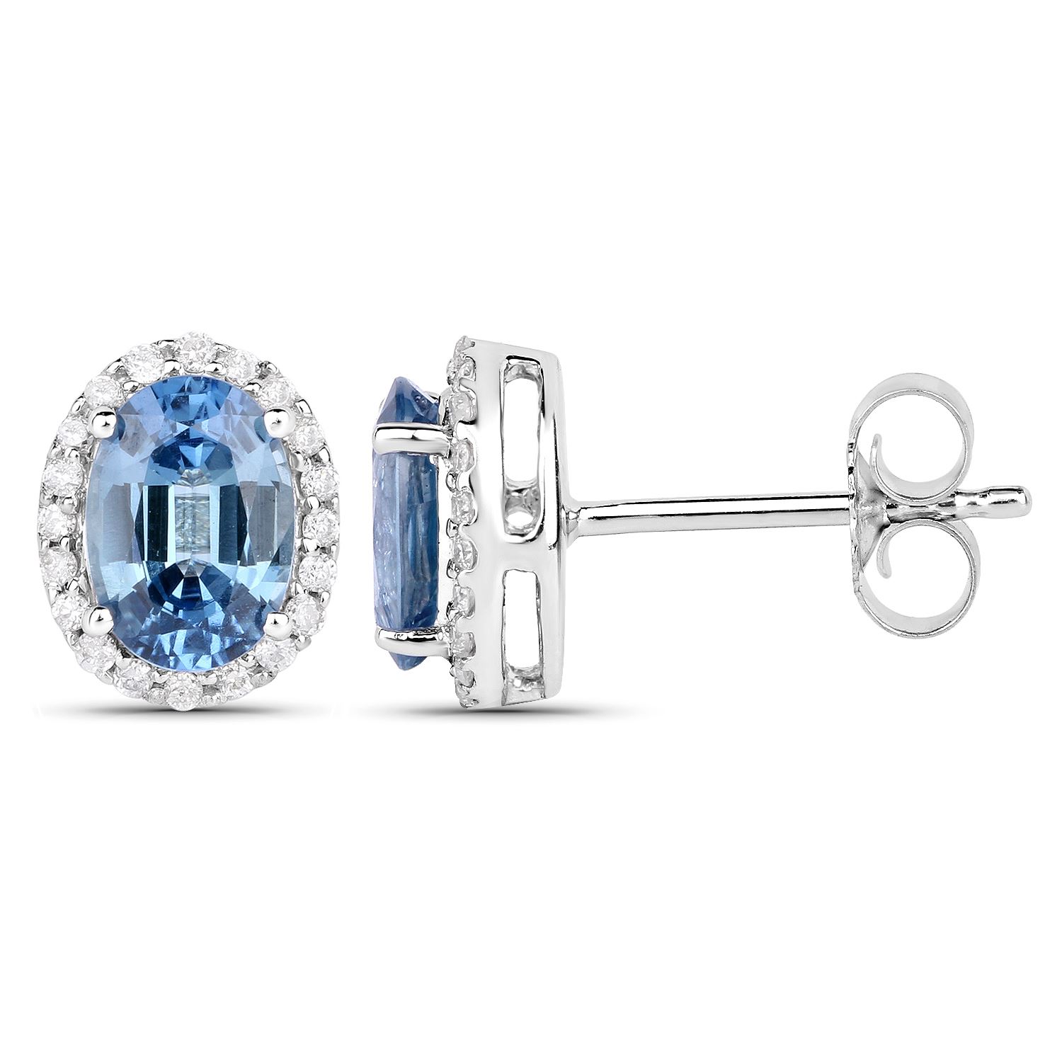 REF-47M2F ---- 2.16 ctw Sapphire Blue & Diamond Earrings 14K White Gold