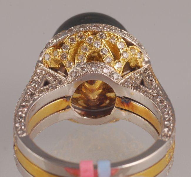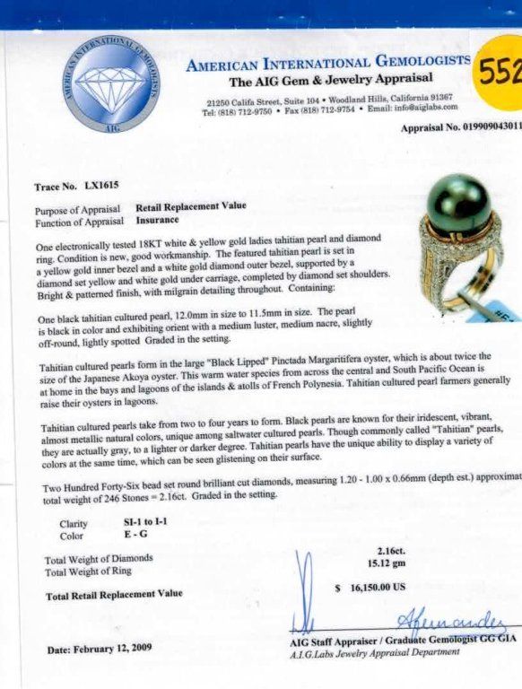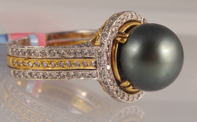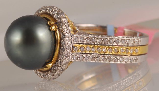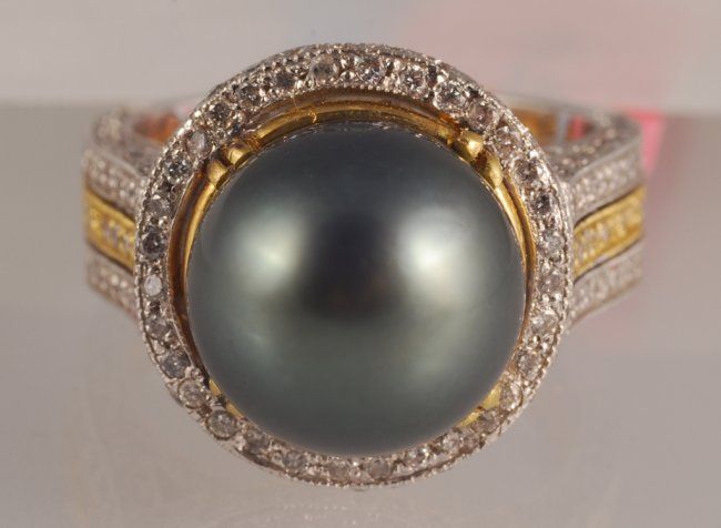 One polished and tested 18k white and yellow gold ladies Tahitian cultured pearl and diamond ring pearl size is 12mm this item weighs 15.12 grams and is in new condition Condition: Excellent