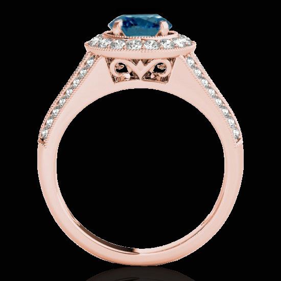 2.17 CTW SI Certified Fancy Blue Diamond Solitaire Halo Ring 10K Rose Gold ---- Luxury Designer Brand Ring Appraised Retail Price at $18,000 ---- SKU Number US33982 10k Rose gold Ring Size is 7, Ring measuring approx. Uniform, weighing in total approx. 5.2 grams. Made in the USA and is stamped 10k, Main stone 1.50 carat total weight containing 1 pieces of Intense Fancy Blue color with SI quality Round shape cut Diamond , Stone #2 0.67 carat total weight containing 67 pieces of H-I color with VS/SI quality Round shape cut