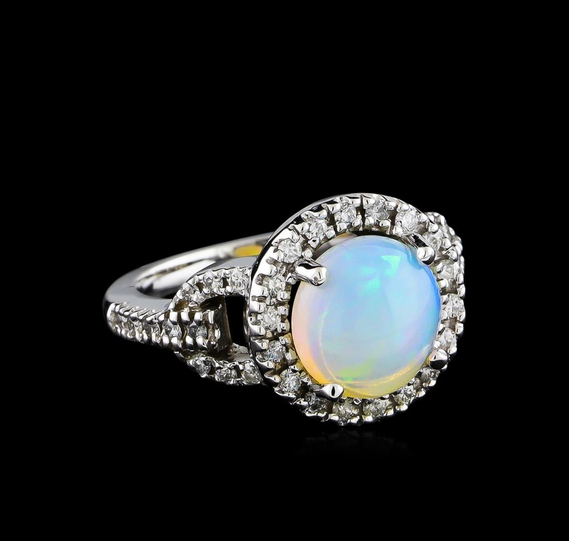 One ring featuring: 14KT white gold weighing 7.47 grams containing one opal with a total weight of 2.17ct and side diamonds with a total weight of 0.53ct.