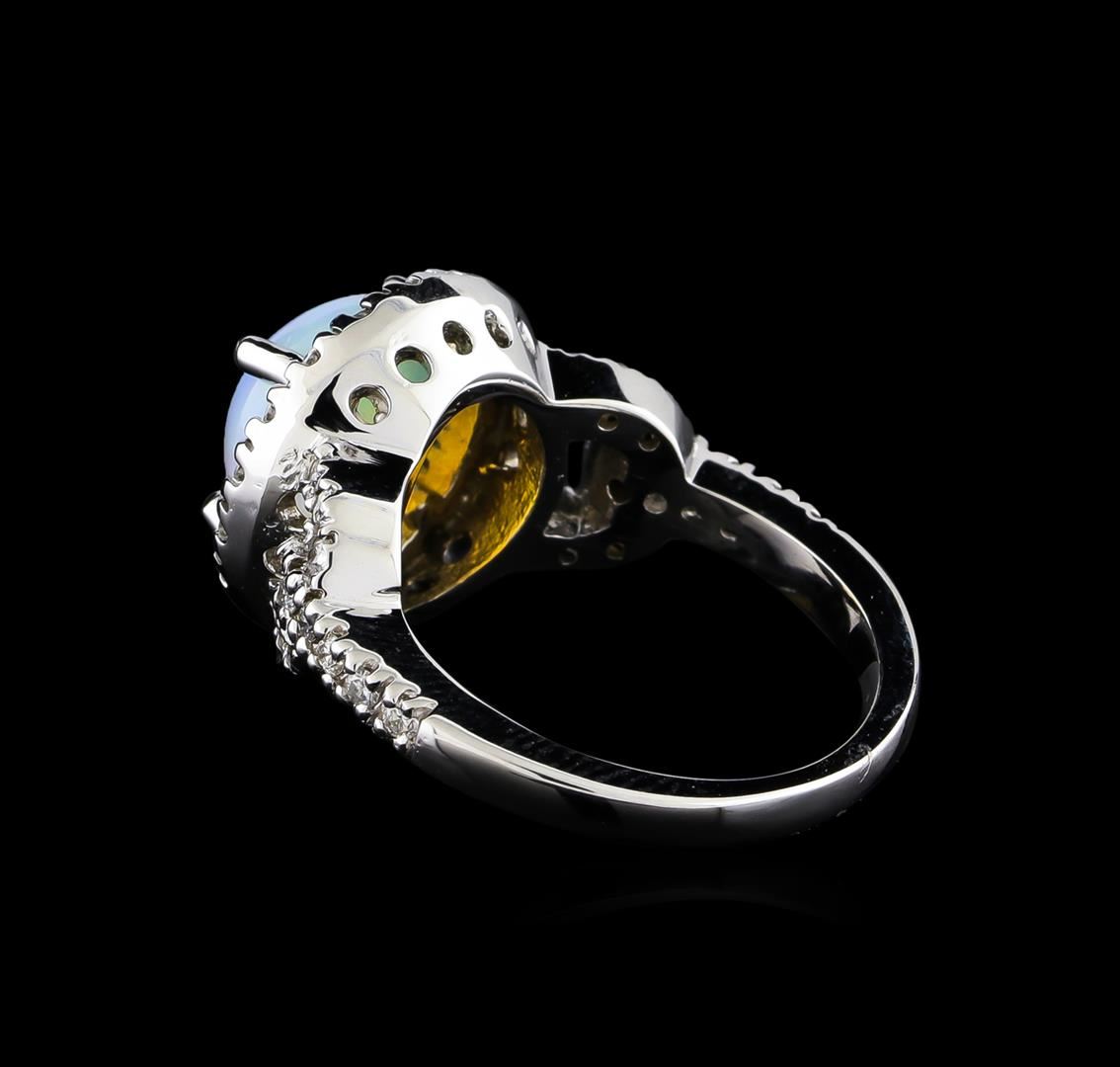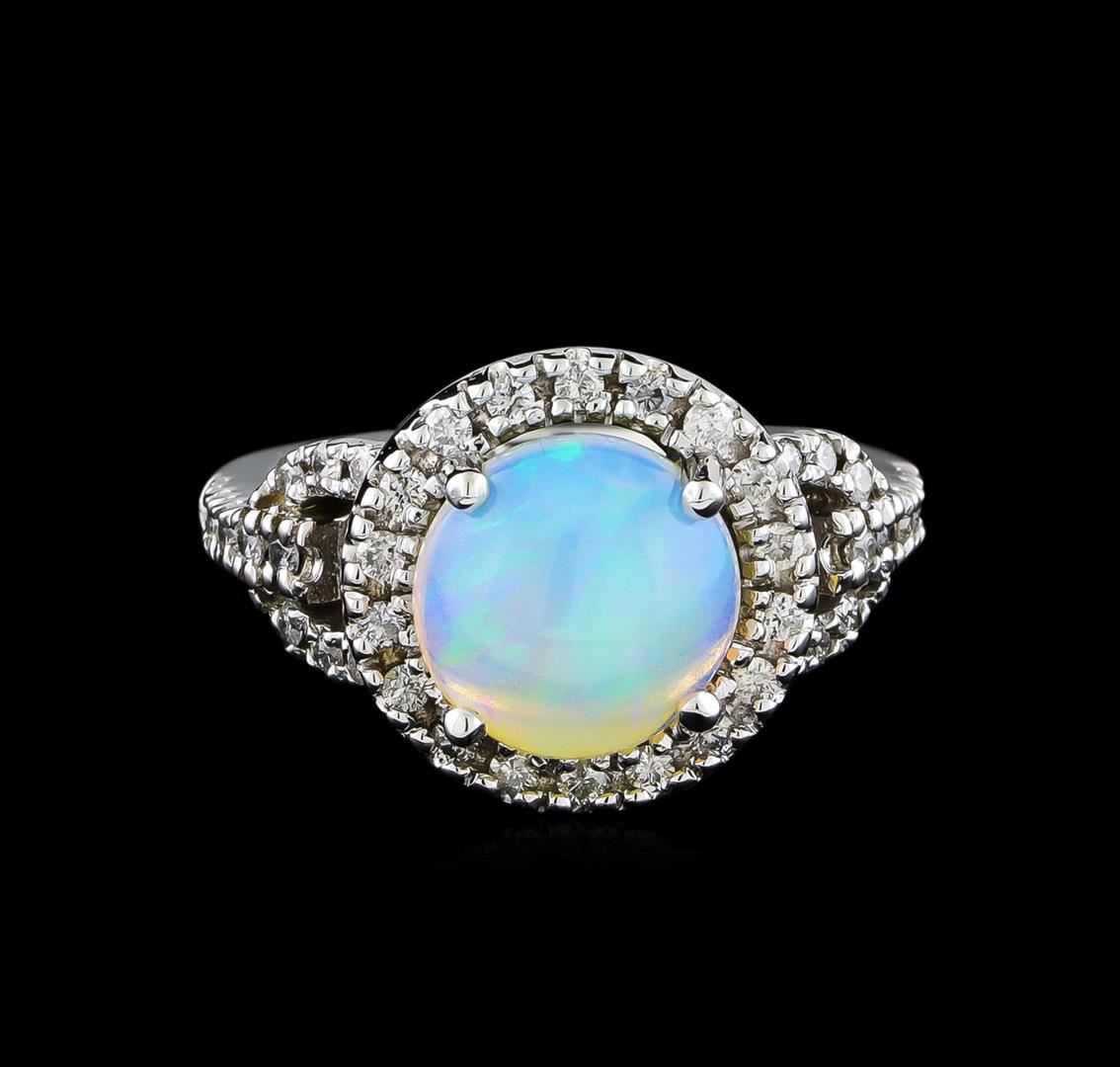 One ring featuring: 14KT white gold weighing 7.47 grams containing one opal with a total weight of 2.17ct and side diamonds with a total weight of 0.53ct.