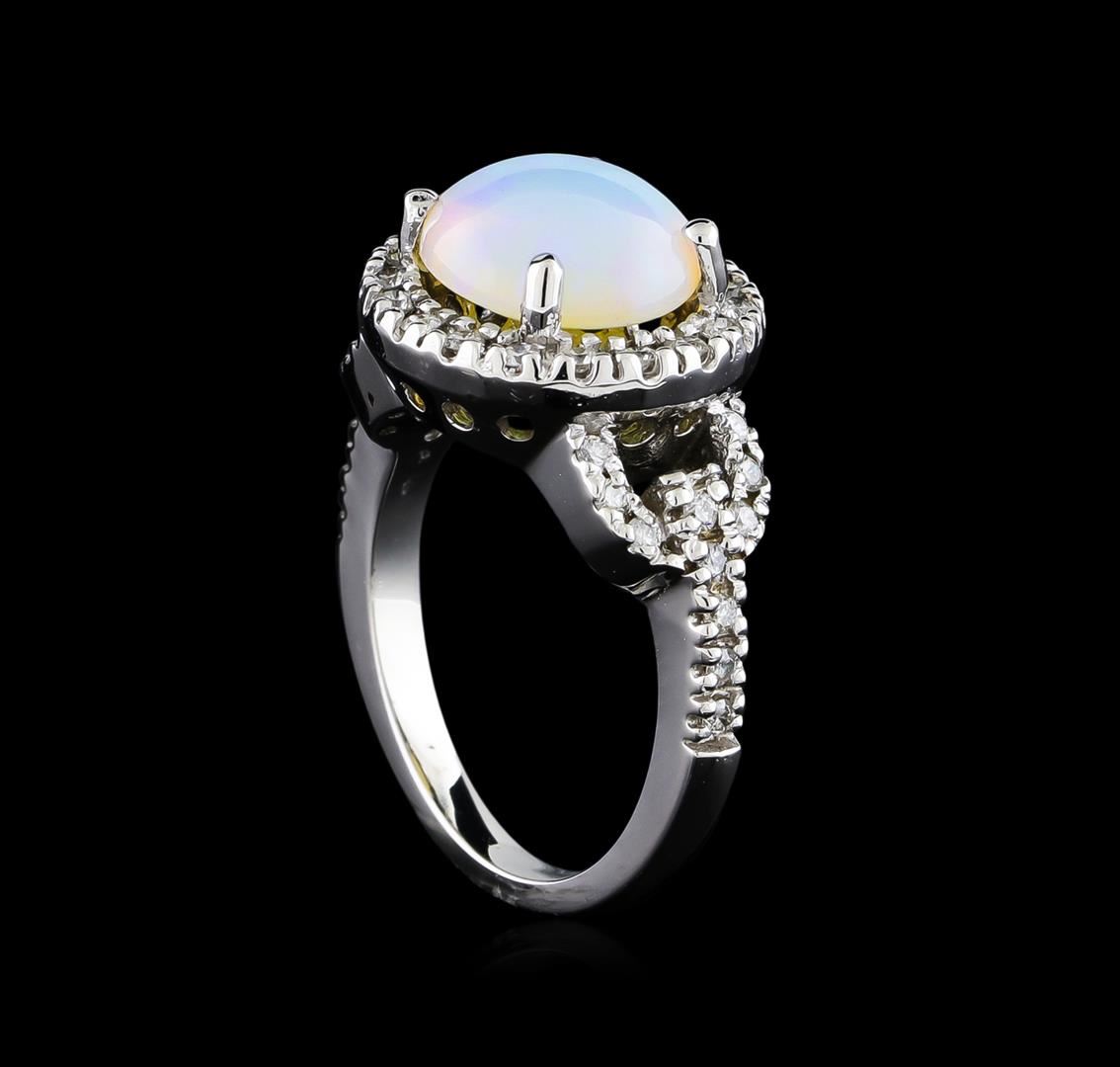 One ring featuring: 14KT white gold weighing 7.47 grams containing one opal with a total weight of 2.17ct and side diamonds with a total weight of 0.53ct.