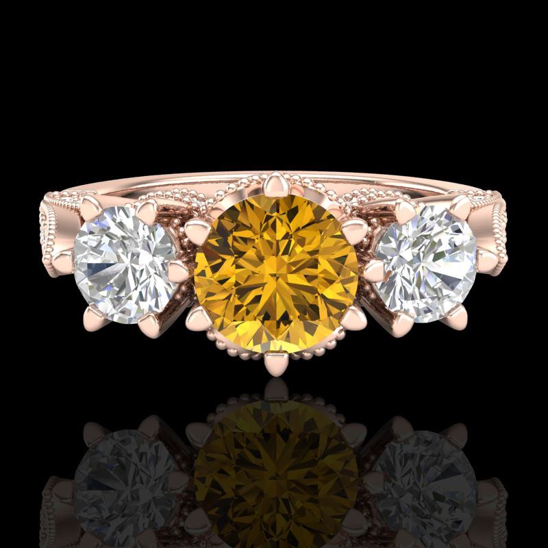 REF-254N5Y -38114 ---- 2.18 CTW Intense Fancy Yellow Diamond Art Deco 3 Stone Ring 18K Rose Gold ---- Luxury Designer Brand 3 stone ring Appraised at $15,400 Certificate Number US38114 18k Rose gold, 3 stone ring Size is 7, 3 stone ring measuring approx. Uniform, weighing in total approx. 9 grams. Made in the USA and is stamped 18k, Main stone 0.78 carat total weight containing 1 pieces of Intense Fancy Yellow color with SI quality Round shape cut Diamond , Stone #2 0.7 carat total weight containing 2 pieces of H-I color with VS/SI quality Round shape cut Diamond , Stone #3 0.7 carat total weight containing 68 pieces of G-H color with VS/SI quality Round shape cut Diamond
