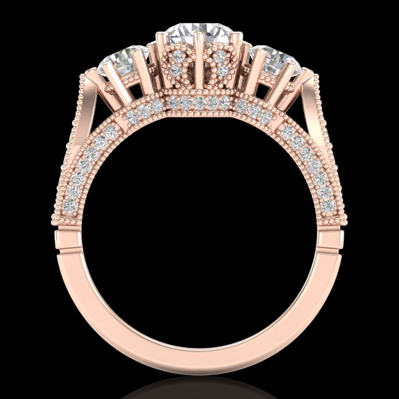2.18 CTW VS/SI Diamond Art Deco 3 Stone Ring 18K Rose Gold ---- Luxury Designer Brand 3 stone ring Appraised Retail Price at $18,000 ---- SKU Number US37248 18k Rose gold 3 stone ring Size is 7, 3 stone ring measuring approx. Uniform, weighing in total approx. 9 grams. Made in the USA and is stamped 18k, Main stone 0.78 carat total weight containing 1 pieces of H-J color with VS/SI quality Round shape cut Diamond , Stone #2 0.7 carat total weight containing 2 pieces of H-I color with VS/SI quality Round shape cut