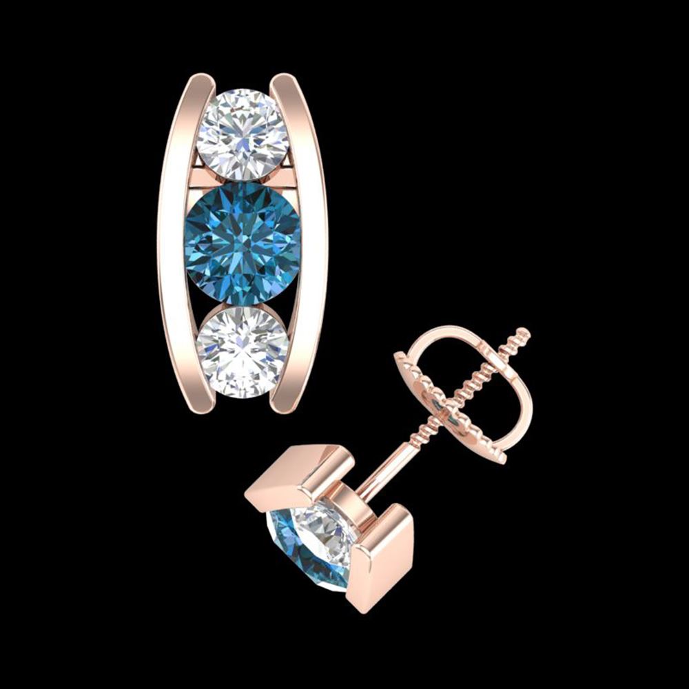 REF-254H5R - SKU: 37769 ---- 2.18 ctw Fancy Intense Blue Diamond Art Deco Earrings 18k Rose Gold