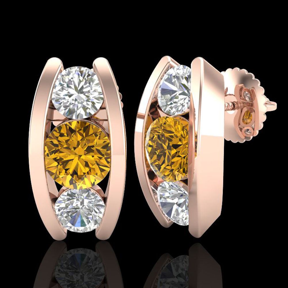 REF-254X5A - SKU: 37771 ---- 2.18 ctw Intense Fancy Yellow Diamond Art Deco Earrings 18k Rose Gold