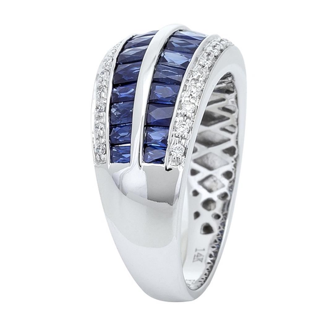 One Ring : 14KT white gold weighing 4.63gm containing 26 blue sapphire stones with a total weight of 2.18ctw and side diamonds weighing 0.14ctw.