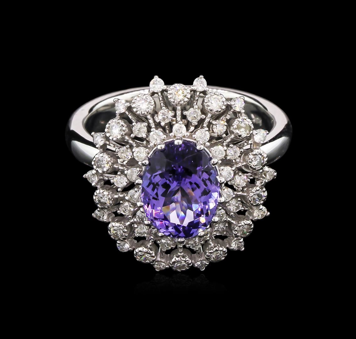 One ring featuring: 14KT white gold weighing 6.25 grams containing one tanzanite with a total weight of 2.18ct and 56 diamonds with a total weight of 0.57ct.
