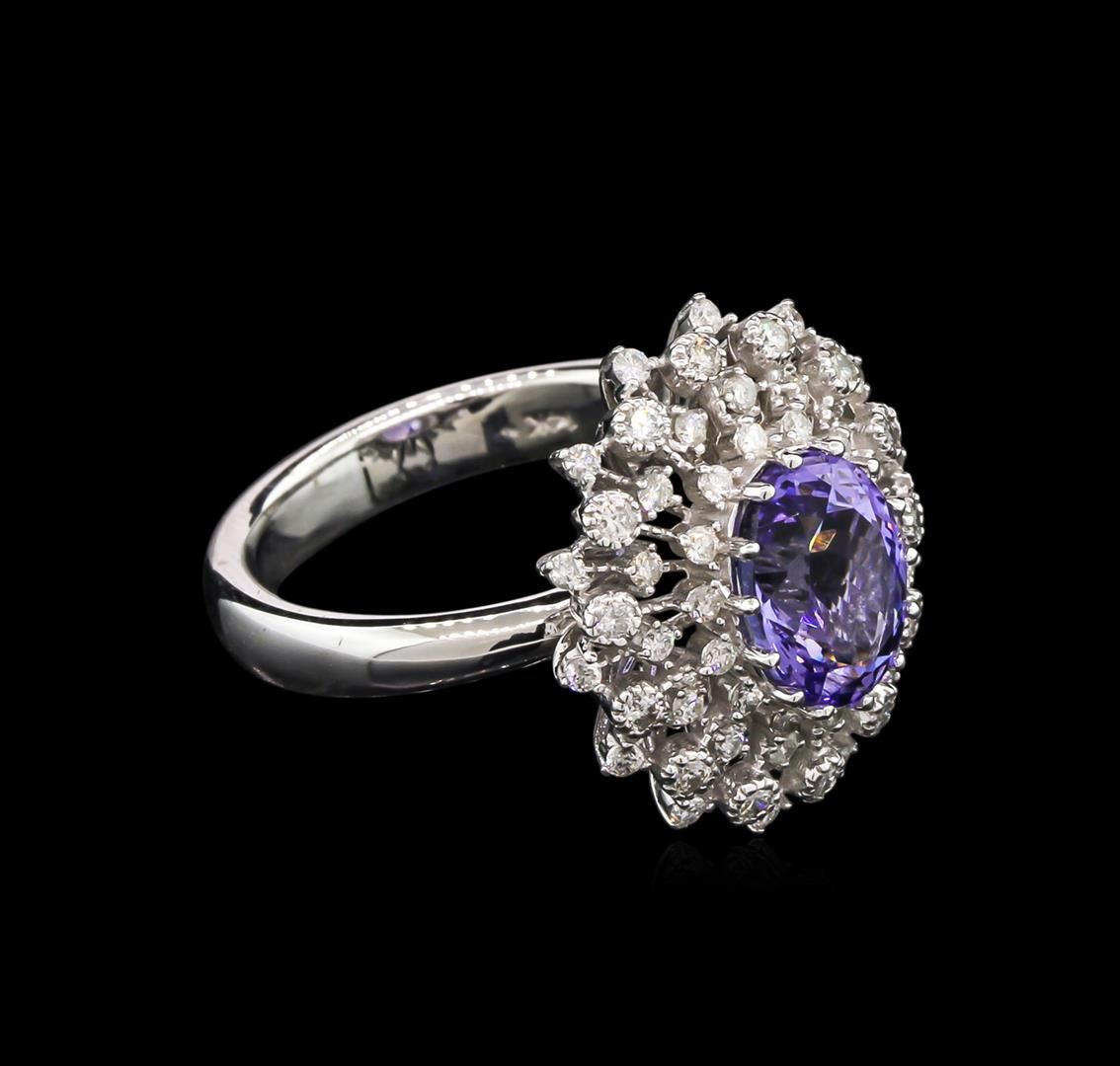 One ring featuring: 14KT white gold weighing 6.25 grams containing one tanzanite with a total weight of 2.18ct and 56 diamonds with a total weight of 0.57ct.