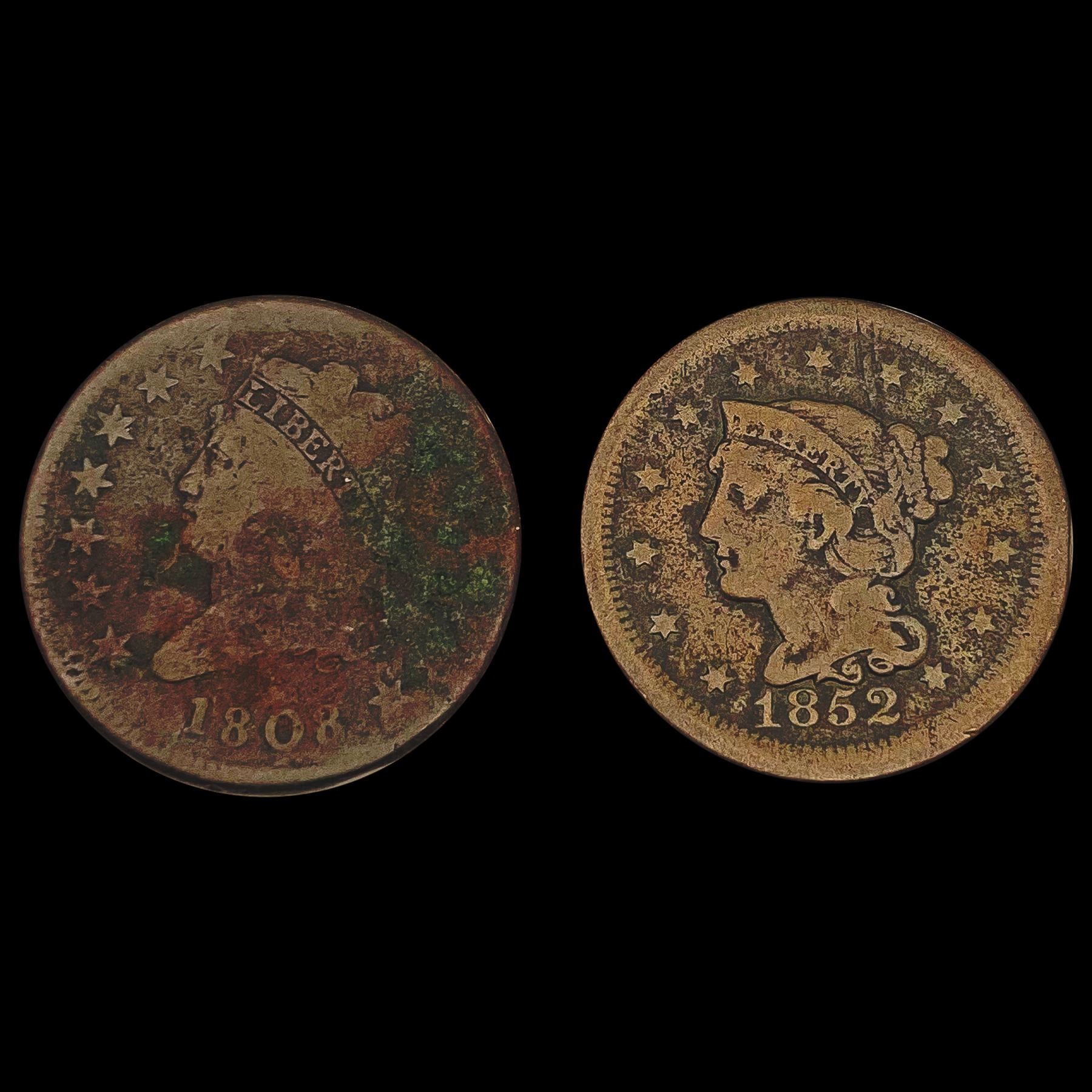 [2] 1808&1852 Varied Large Cents NICELY CIRCULATED