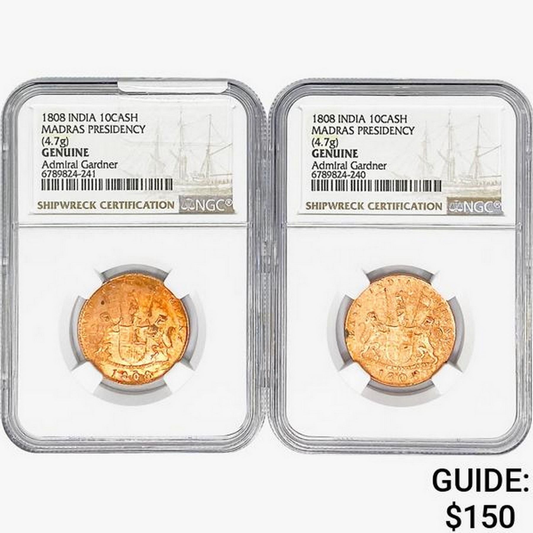 [2]1808 India 10Cash Madras Presidency NGC Genuine