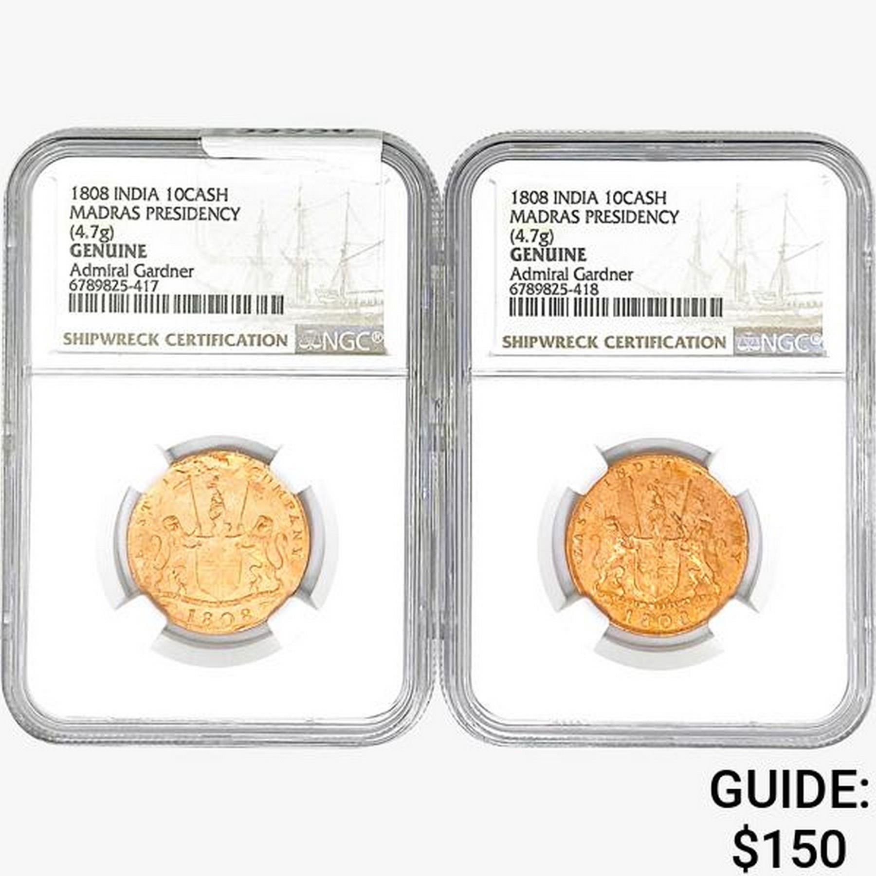 [2]1808 India 10Cash Madras Presidency NGC Genuine