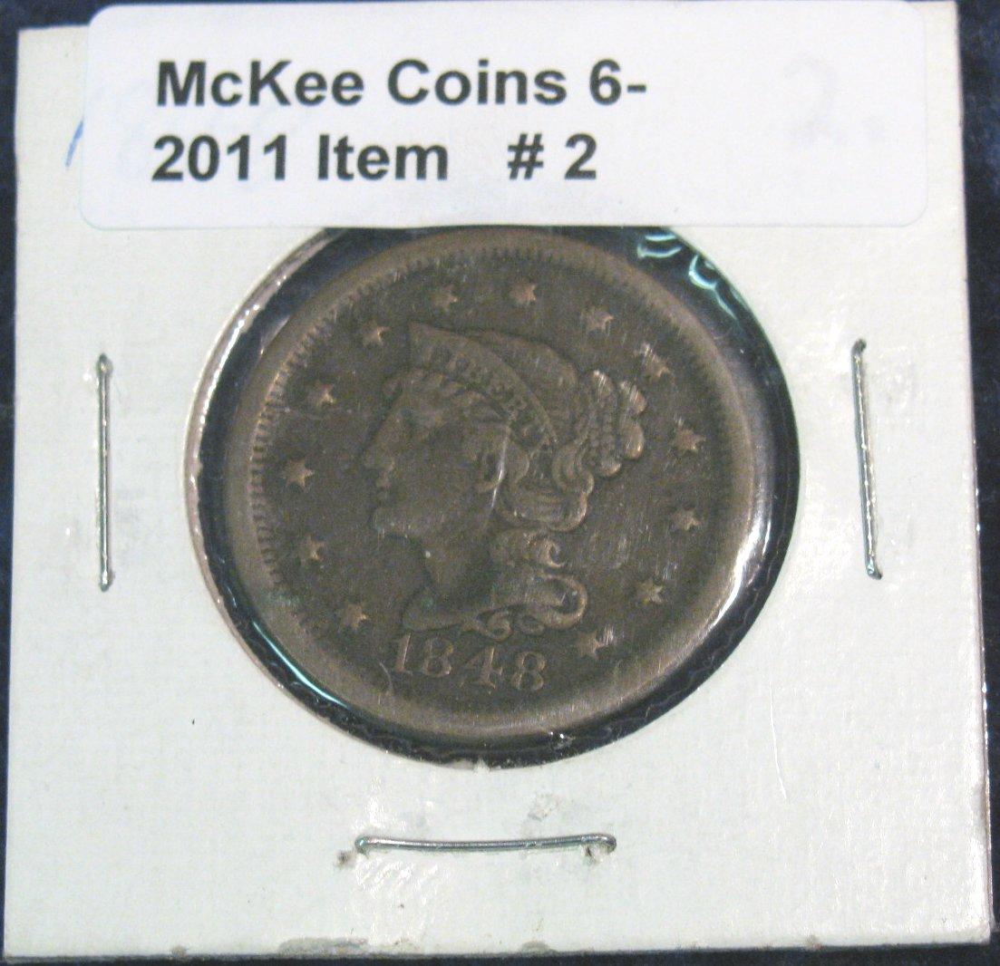 2. 1848 U.S. Large Cent. F-12.