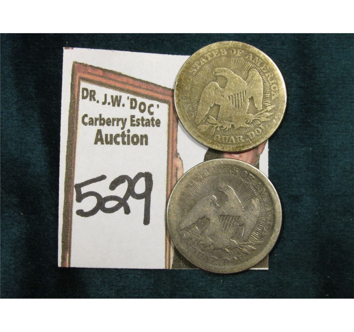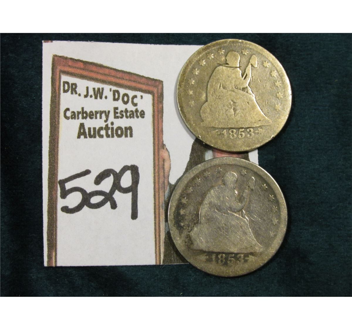 (2) 1853 Arrows & Rays U.S. Seated Liberty Quarters, AG-G.