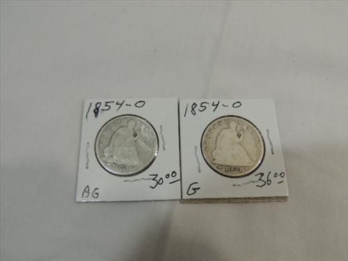 (2) 1854-O WITH ARROWS CIRCULATED (AG) SEATED HALF DOLLARS. AS SHOWN. VIEW PICTURE FOR DETAIL.