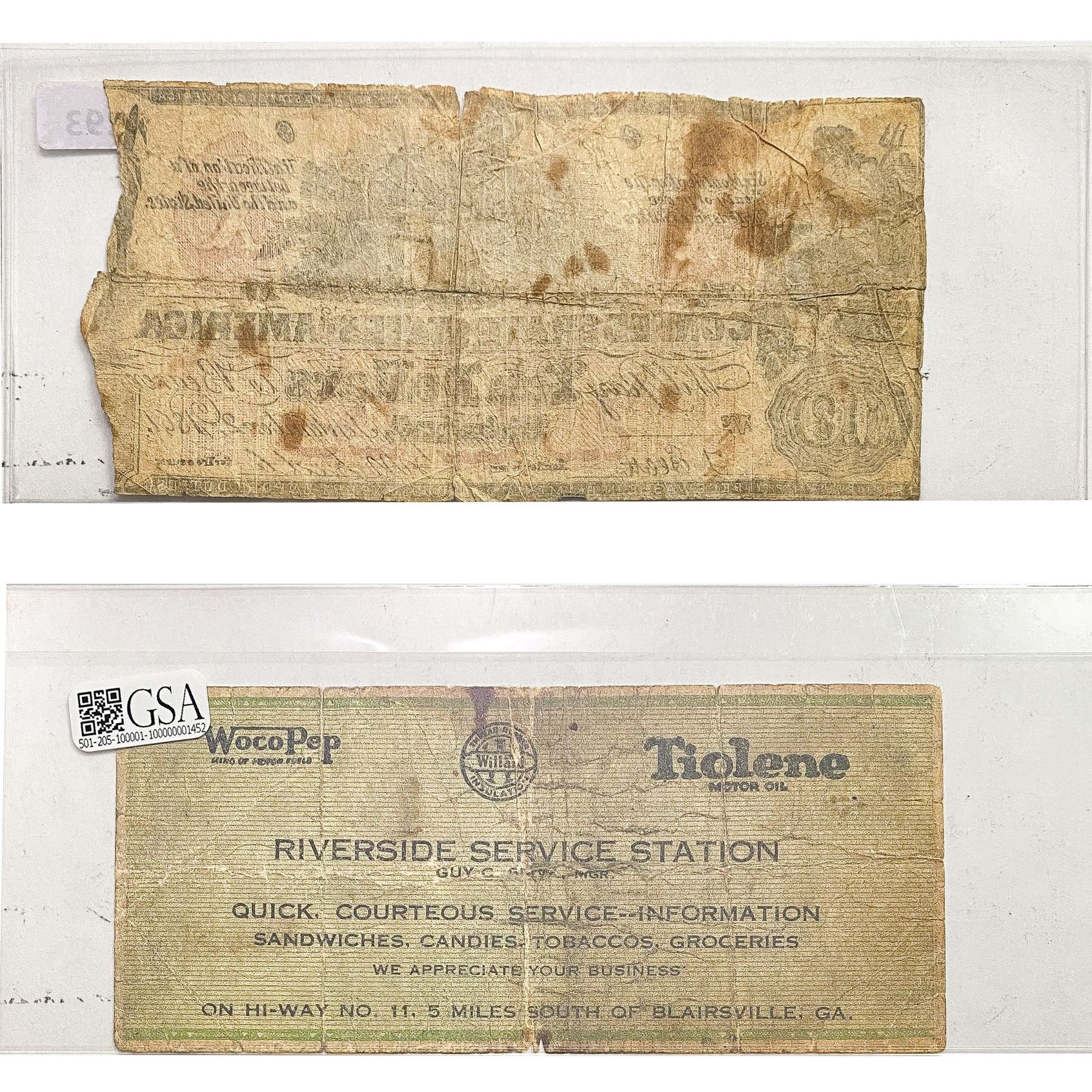 f. Notes sold referencing a third-party grading service are sold “AS IS” without any express or implied warranty, except for guarantee by GSA that they are genuine. Grading, condition or other attributes of any Product may have a material effect on its value and the opinion of others, including third-party grading services such as PCGS Currency and PMG may differ with that of GSA. GSA shall not be bound by any prior or subsequent opinion, determination, or certification by any grading service. Bidders specifically waive any claim to right of return of any Product because of the opinion, determination, or certification, or lack thereof, by any grading service. Certain warranties may be available from the grading services and Bidders are referred to them for further details: Paper Money Guaranty (PMG), PO Box 4711, Sarasota, FL 34230; PCGS Currency, PO Box 10470, Peoria, IL 61612-0470; PCGS Gold Shield, PO Box 9458, Newport Beach, CA 92658. Third-party graded notes are not returnable for any reason whatsoever.