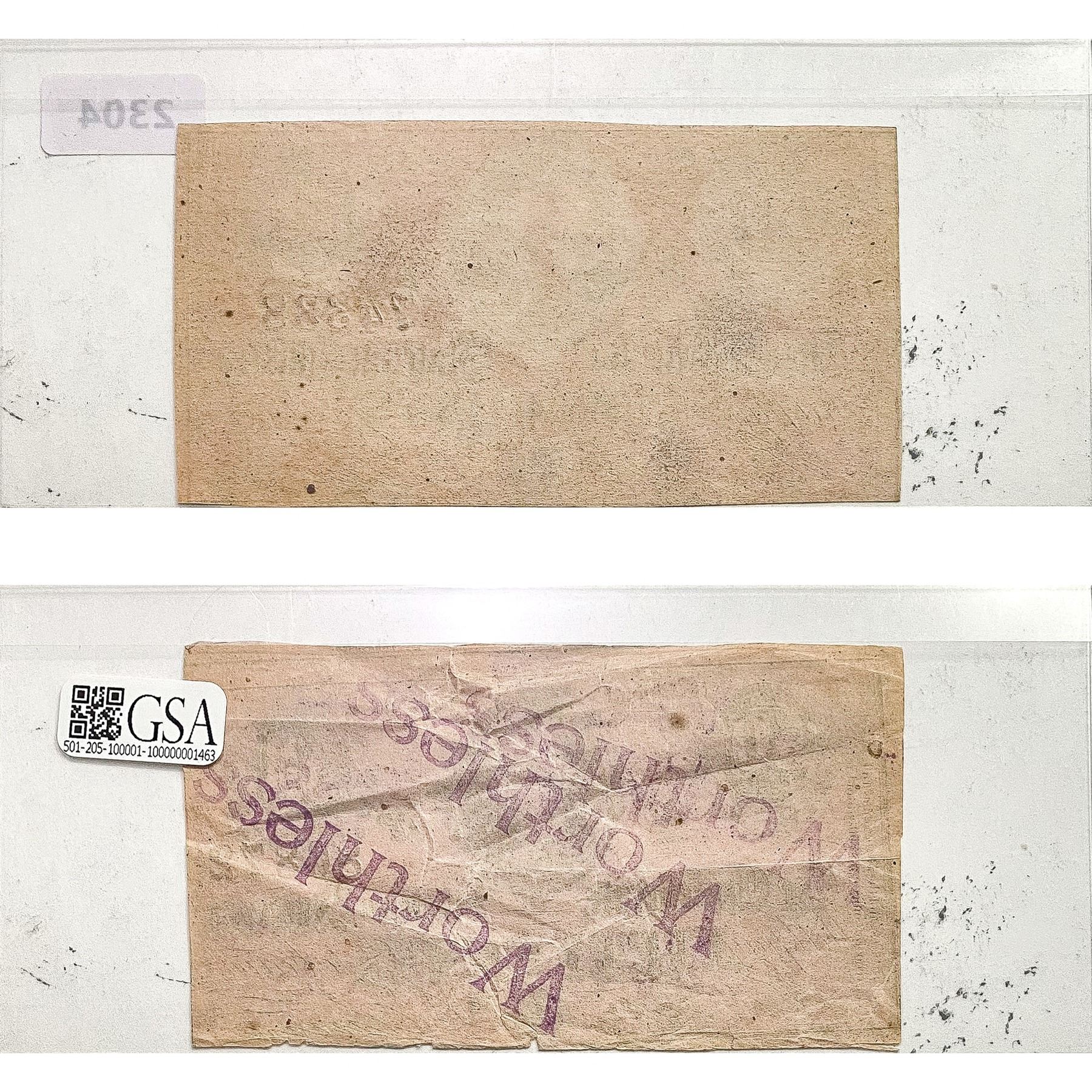 f. Notes sold referencing a third-party grading service are sold “AS IS” without any express or implied warranty, except for guarantee by GSA that they are genuine. Grading, condition or other attributes of any Product may have a material effect on its value and the opinion of others, including third-party grading services such as PCGS Currency and PMG may differ with that of GSA. GSA shall not be bound by any prior or subsequent opinion, determination, or certification by any grading service. Bidders specifically waive any claim to right of return of any Product because of the opinion, determination, or certification, or lack thereof, by any grading service. Certain warranties may be available from the grading services and Bidders are referred to them for further details: Paper Money Guaranty (PMG), PO Box 4711, Sarasota, FL 34230; PCGS Currency, PO Box 10470, Peoria, IL 61612-0470; PCGS Gold Shield, PO Box 9458, Newport Beach, CA 92658. Third-party graded notes are not returnable for any reason whatsoever.