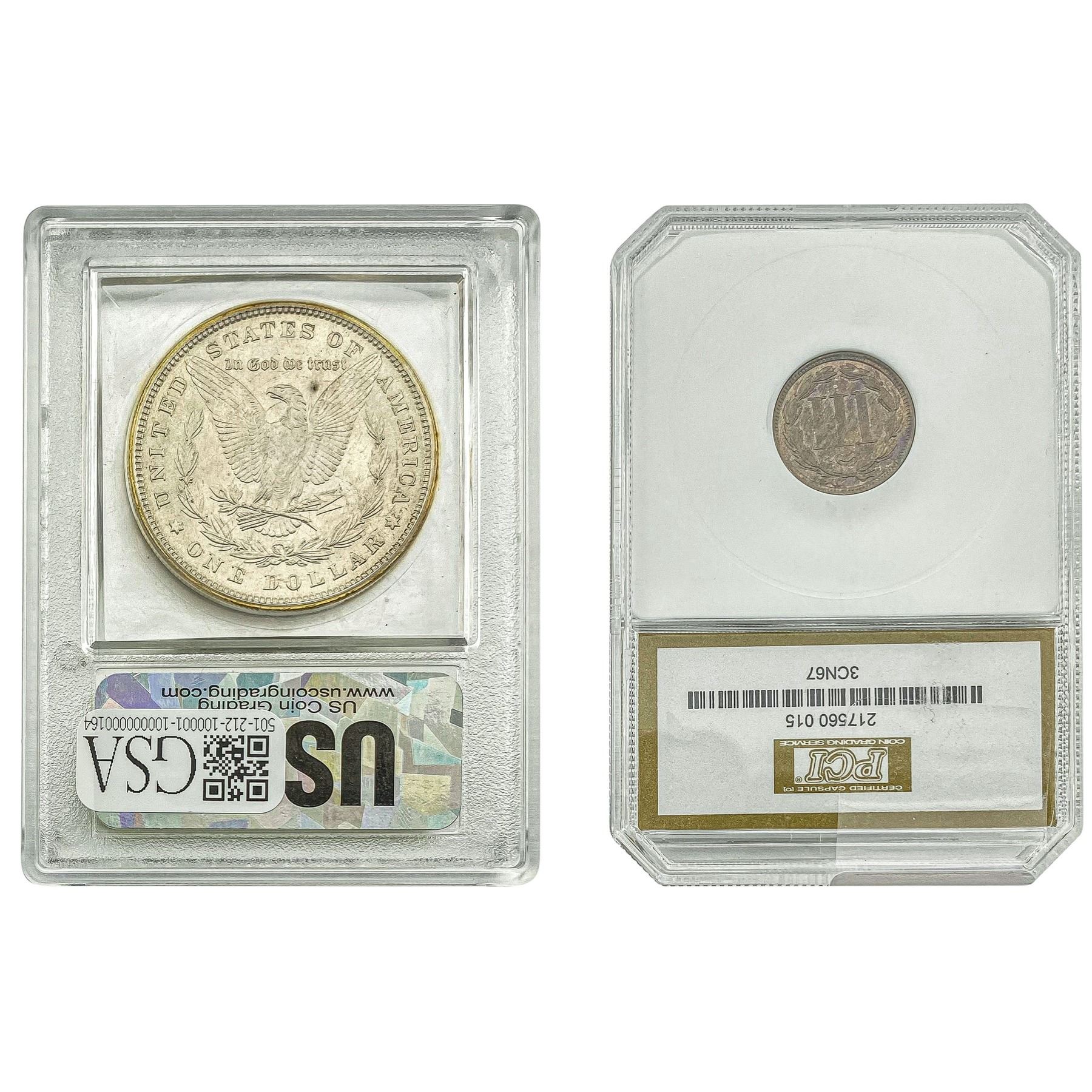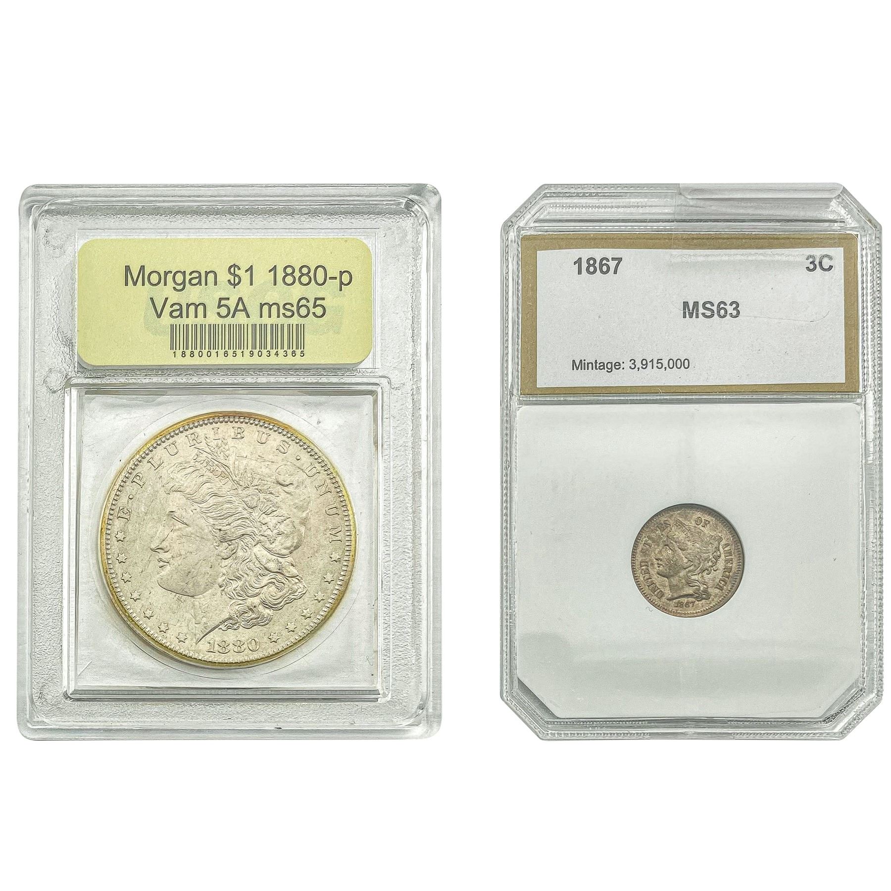 [2]1867 & 1880-P 3 Cent & Morgan Dollar PCI/USCG