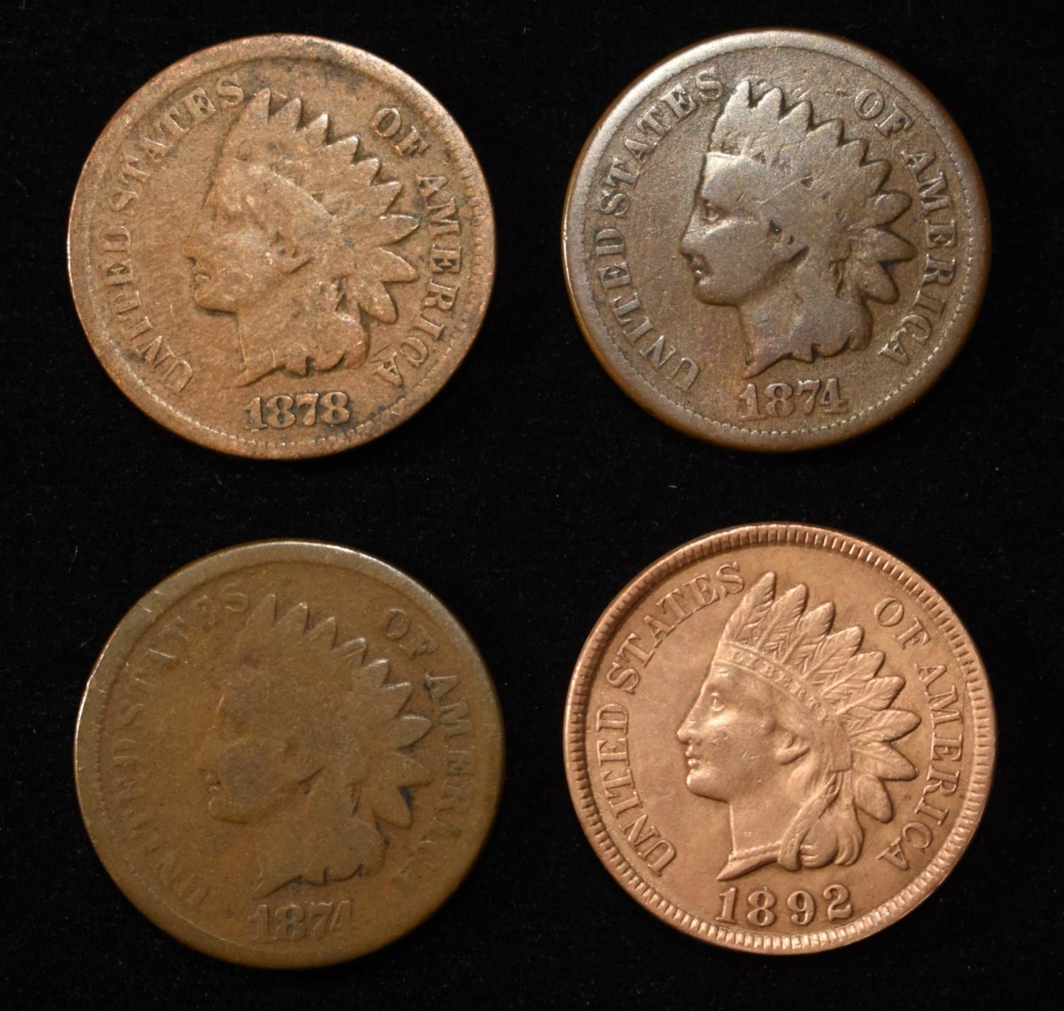 (2) 1874, 1878, 1892 INDIAN CENTS
