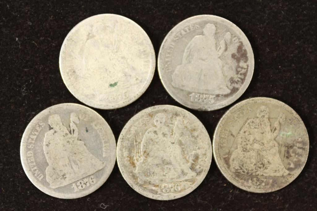 2-1875, 2-1876 & 1877 SEATED LIBERTY DIMES