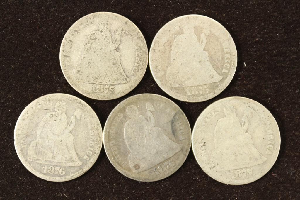 2-1875, 2-1876 & 1877 SEATED LIBERTY DIMES