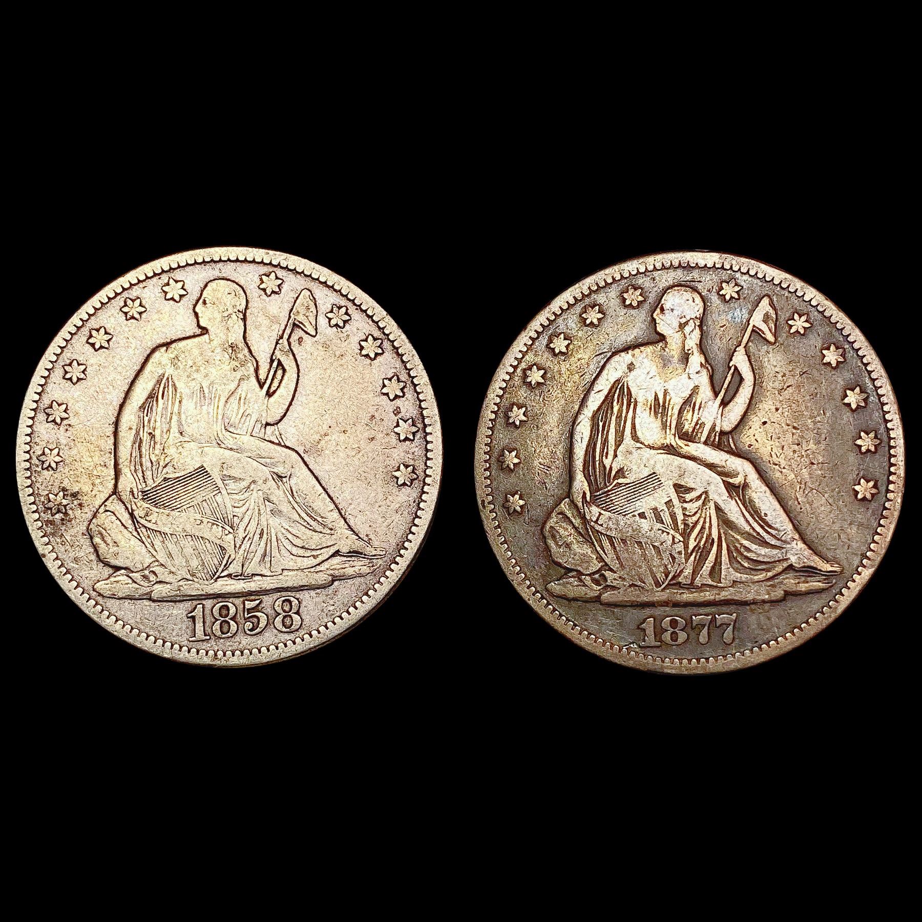 [2] 1877-S&1858 Seated Liberty Half Dollar NICELY CIRCULATED