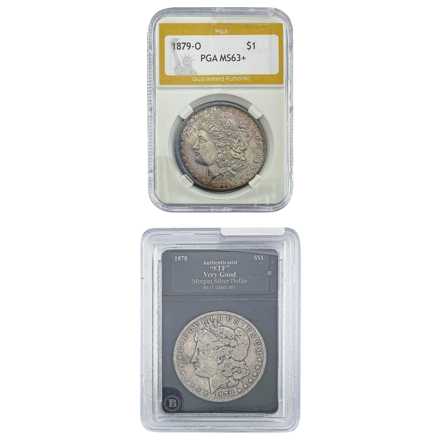 COINS AND CURRENCY LISTED IN GSA’S CATALOG AS GRADED AND ENCAPSULATED BY PCGS, NGC, ANACS, ICG, PCGS CURRENCY, PMG, PCGS BANKNOTE GRADING, CMC OR ANY OTHER THIRD-PARTY GRADING SERVICE ARE LIKEWISE SOLD “AS-IS” EXCEPT AS EXPRESSLY SET FORTH HEREIN. ALL THIRD-PARTY GRADING SERVICE GUARANTEES, INCLUDING AUTHENTICITY, ARE THE SOLE RESPONSIBILITY OF THE THIRD-PARTY GRADING SERVICE AND NOT WARRANTIES OR GUARANTEES OF GSA. BIDDERS SHOULD CONTACT THESE THIRD-PARTY GRADING SERVICES DIRECTLY WITH RESPECT TO ANY CLAIMS OR QUESTIONS THEY MAY HAVE CONCERNING THEIR GUARANTEES AND WARRANTIES. BIDDERS ACKNOWLEDGE AND AGREE THAT AUCTIONEER IS NOT BOUND BY OR LIABLE FOR ANY OPINION OR CERTIFICATION BY ANY THIRD-PARTY GRADING SERVICE. REMOVAL OF A PRODUCT FROM ITS PROTECTIVE CASING OR HOLDER OR ALTERATION OF ANY COIN HOLDER WAIVES ALL RIGHTS CONCERNING THE PRODUCT CONTAINED THEREIN.