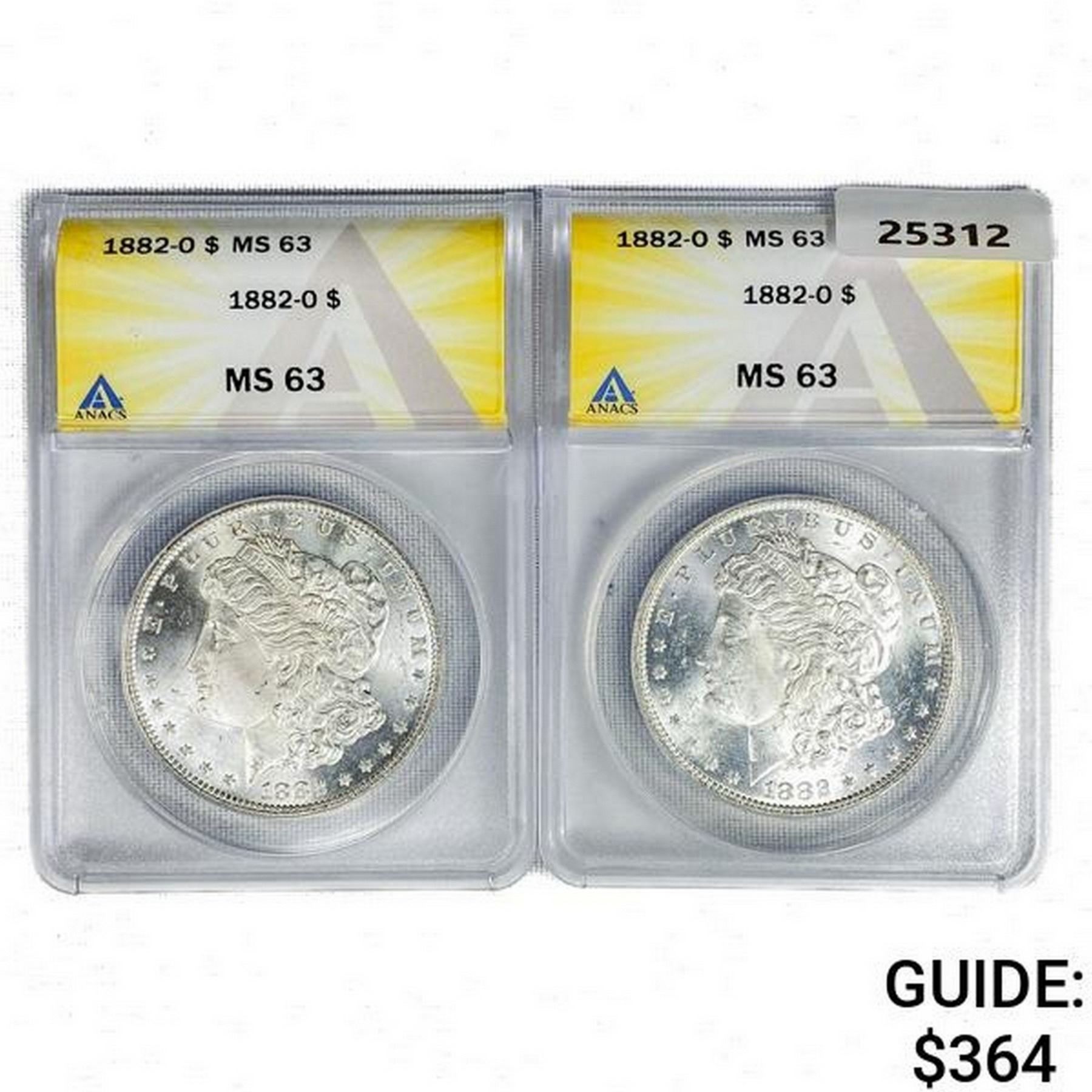 (2) 1882-O Morgan Silver Dollars ANACS MS63