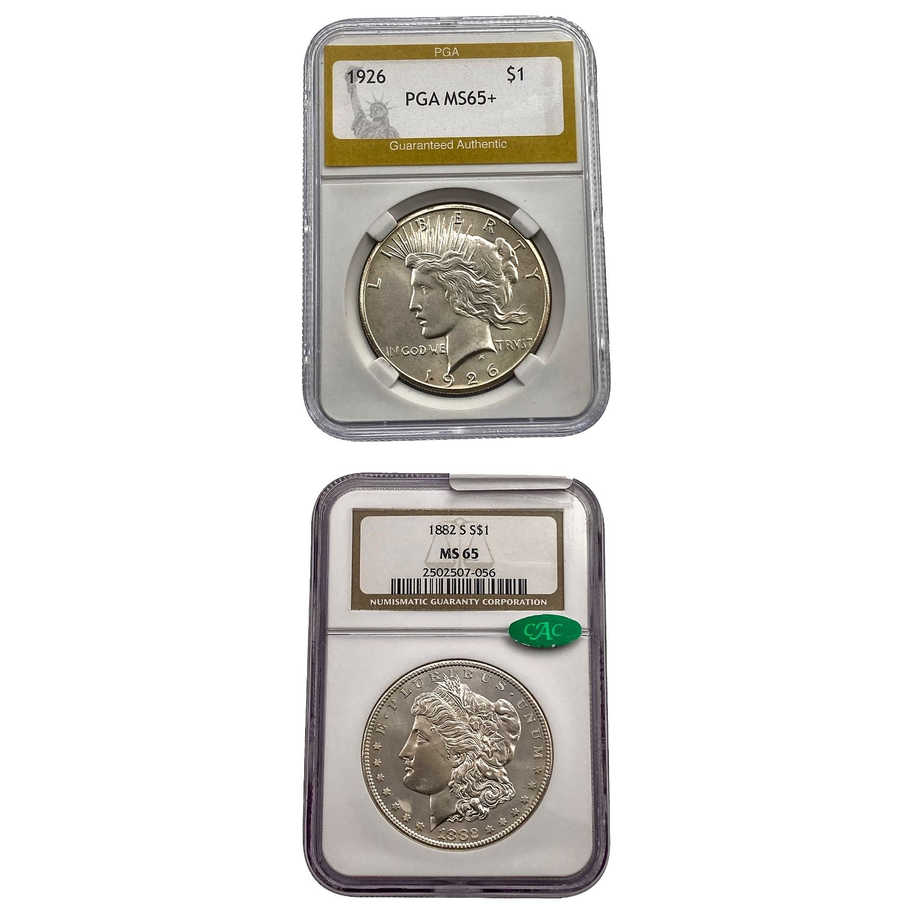 [2]1882-S & 1926 CAC Morgan/Peace Dollars NGC/PGA MS65