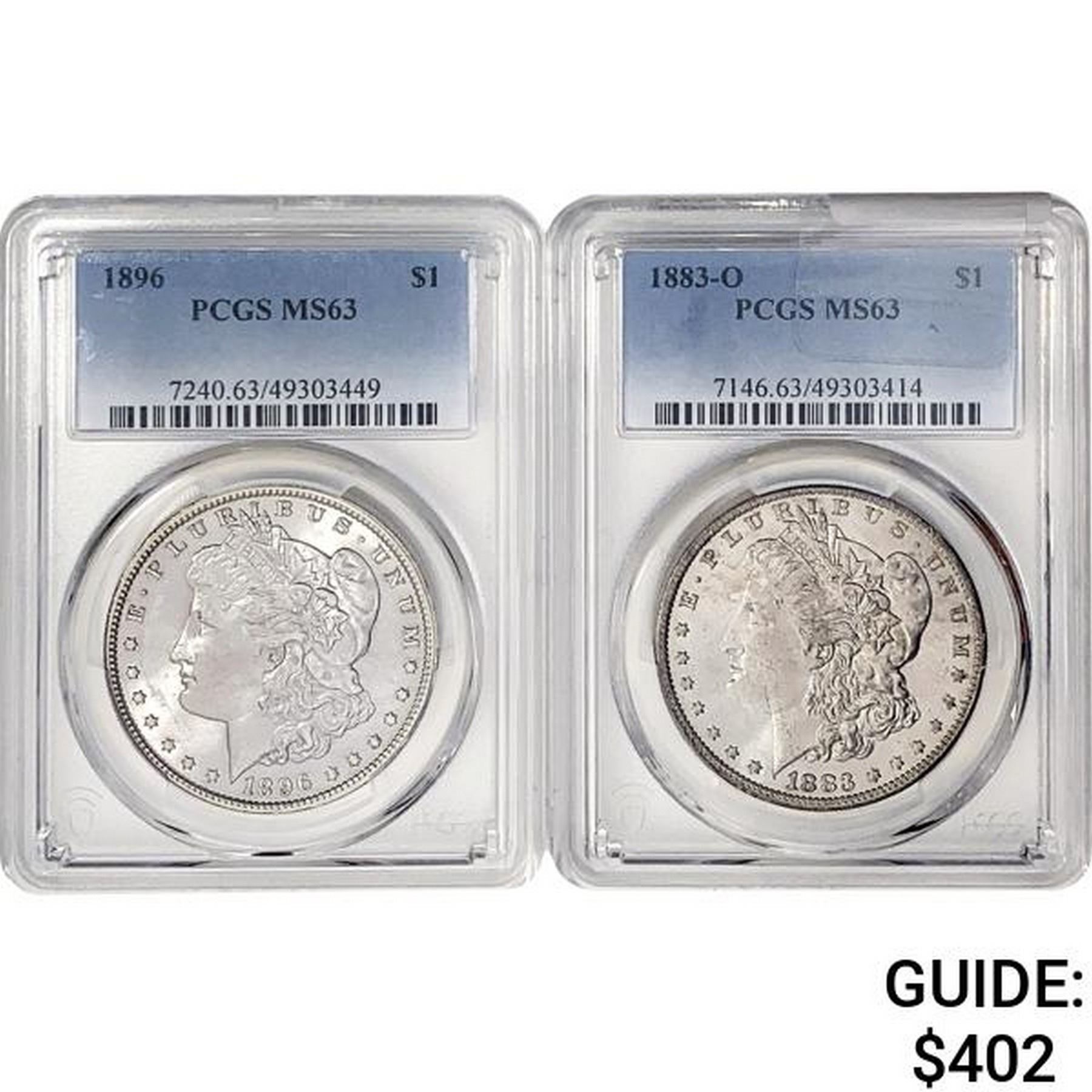 [2] 1883-O&1896 Morgan Silver Dollar PCGS MS63