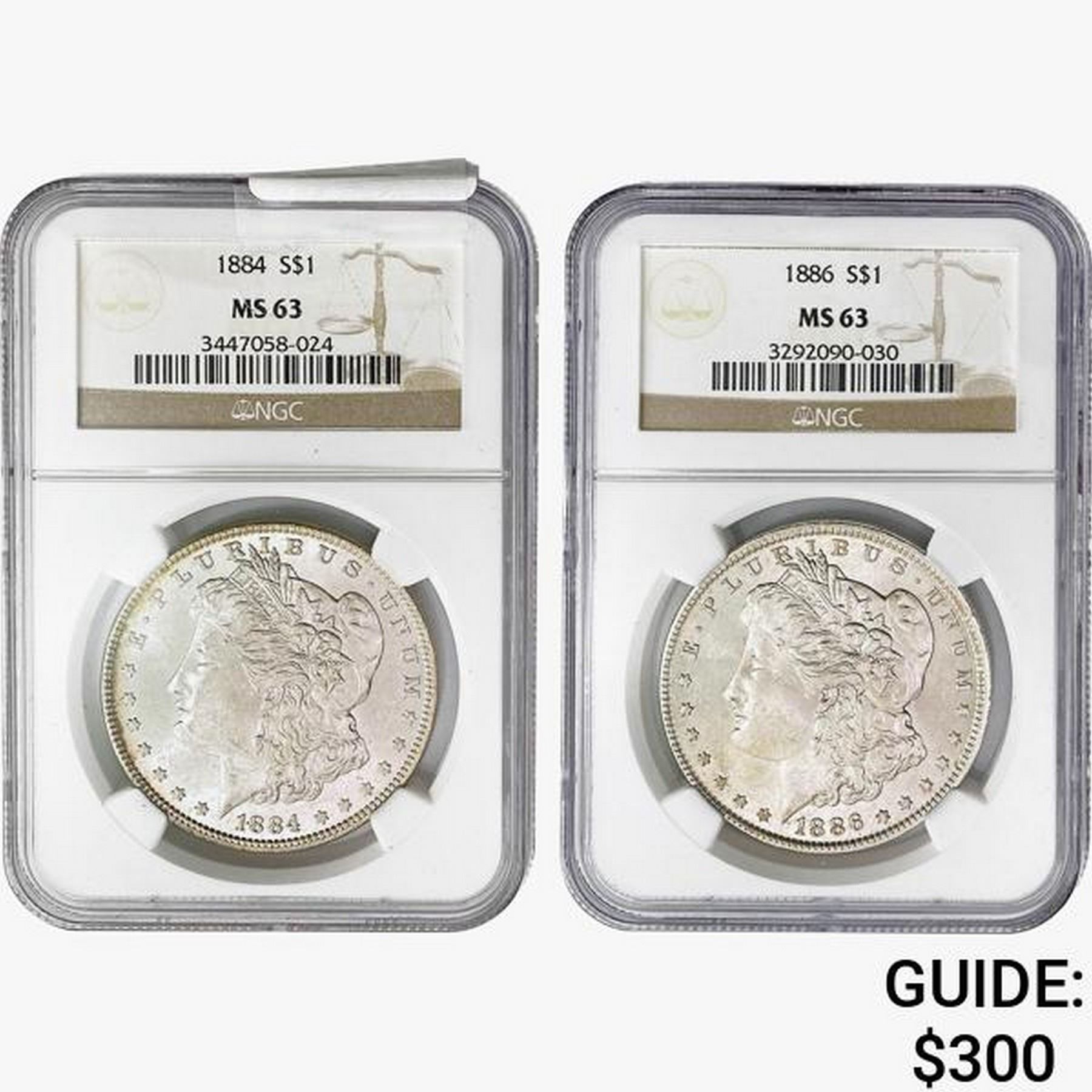 [2] 1884 & 1886 Morgan Silver Dollar NGC MS63