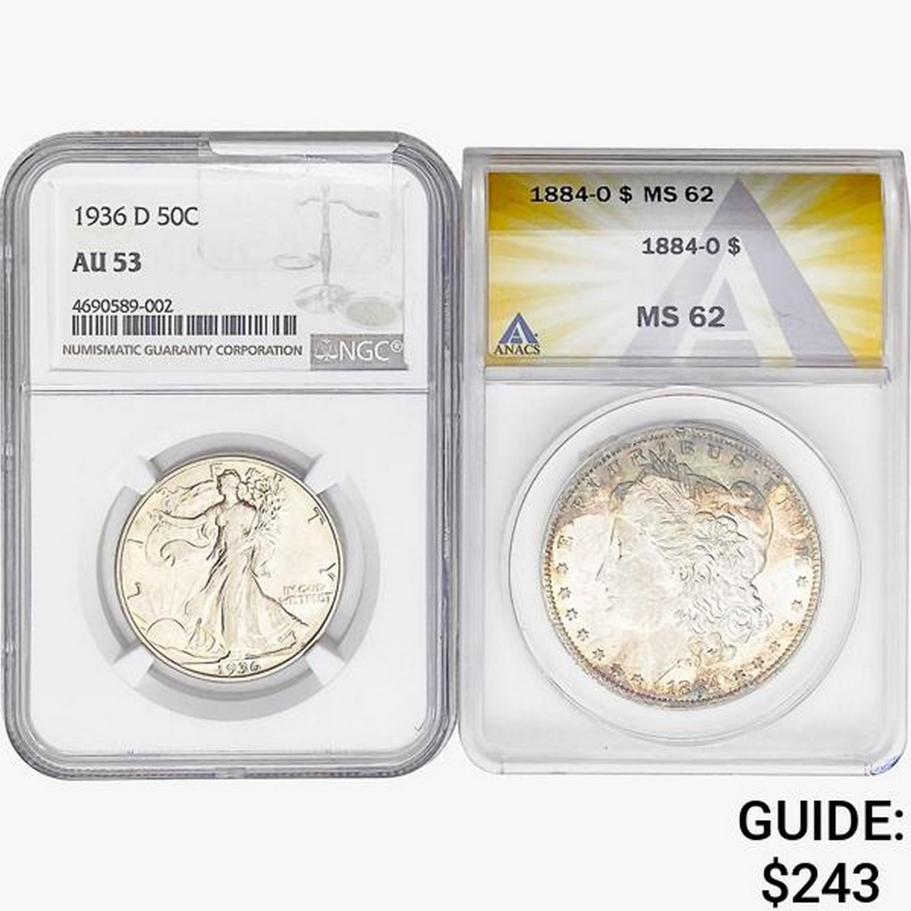 [2] 1884-O&1936-D 1 50C, 1 $1 NGC/ANACS AU/MS