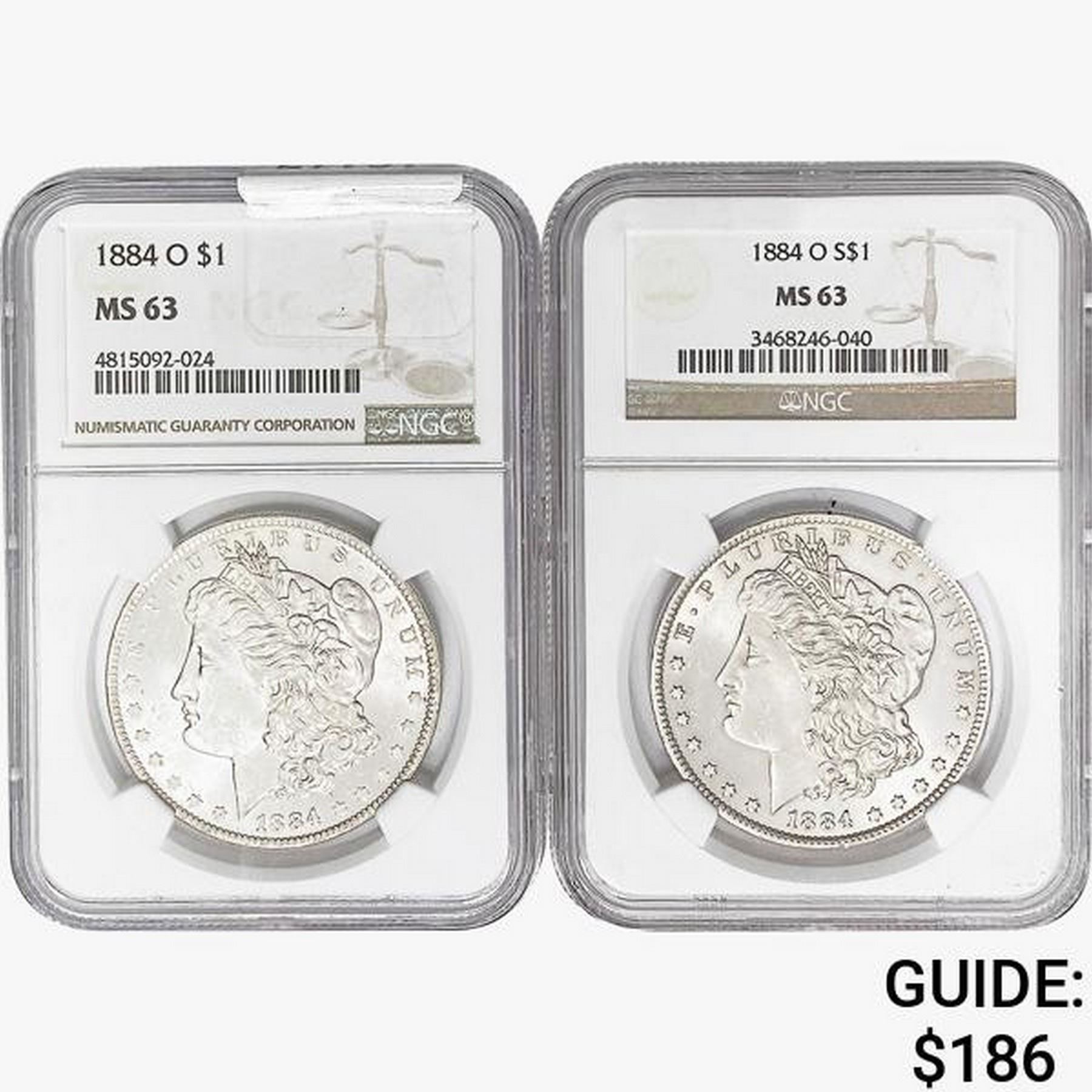 [2] 1884-O Morgan Silver Dollar NGC MS63