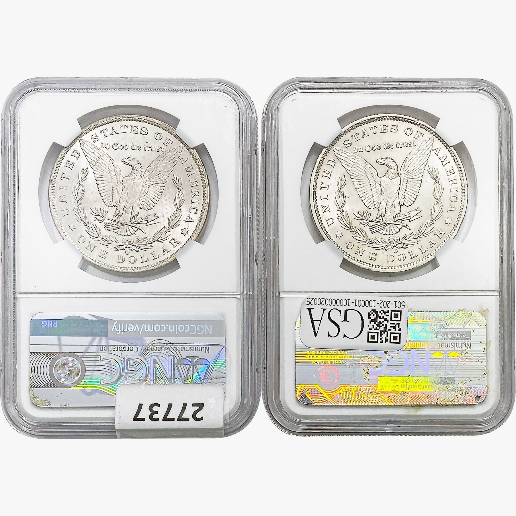 e. Coins sold referencing a third-party grading service are sold “AS IS” without any express or implied warranty, except for a guarantee by GSA that they are genuine. Removal or alteration of the holder, voids all of Bidder’s claims concerning that Product. Certain warranties may be available from the grading services and Bidders are referred to them for further details: Numismatic Guaranty Corporation (NGC), PO Box 4776, Sarasota, FL 34230, www.ngccoin.com/services/writtenguarantee.asp; Professional Coin Grading Services (PCGS), PO Box 9458, Newport Beach, CA 92658, www.pcgs.com/guarantee.html; ANACS, 6555 S. Kenton St., Ste. 303, Englewood, CO 80111; and Independent Coin Grading Co. (ICG), 7901 East Bellview, Ave., Suite 50, Englewood, CO 80111.