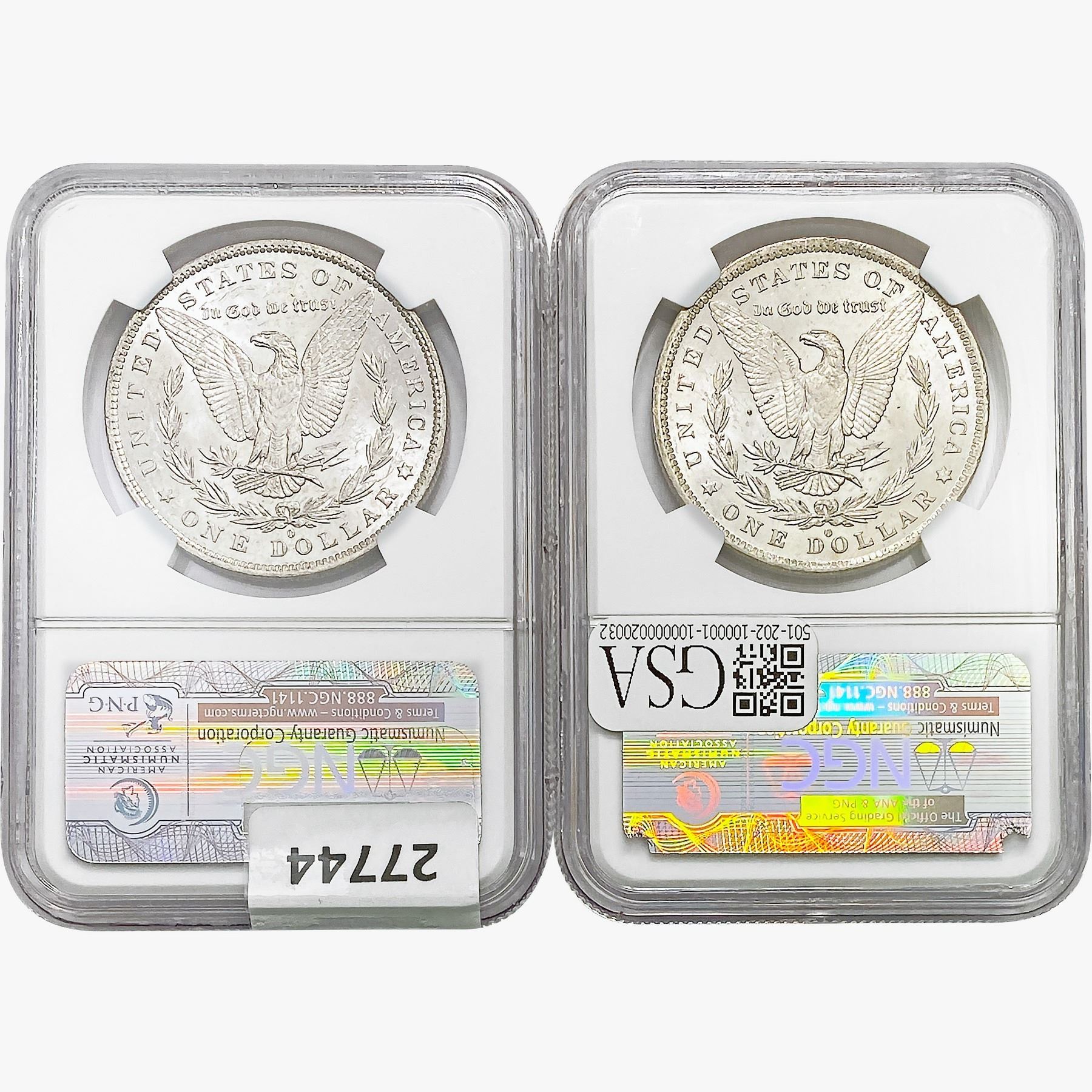 e. Coins sold referencing a third-party grading service are sold “AS IS” without any express or implied warranty, except for a guarantee by GSA that they are genuine. Removal or alteration of the holder, voids all of Bidder’s claims concerning that Product. Certain warranties may be available from the grading services and Bidders are referred to them for further details: Numismatic Guaranty Corporation (NGC), PO Box 4776, Sarasota, FL 34230, www.ngccoin.com/services/writtenguarantee.asp; Professional Coin Grading Services (PCGS), PO Box 9458, Newport Beach, CA 92658, www.pcgs.com/guarantee.html; ANACS, 6555 S. Kenton St., Ste. 303, Englewood, CO 80111; and Independent Coin Grading Co. (ICG), 7901 East Bellview, Ave., Suite 50, Englewood, CO 80111.
