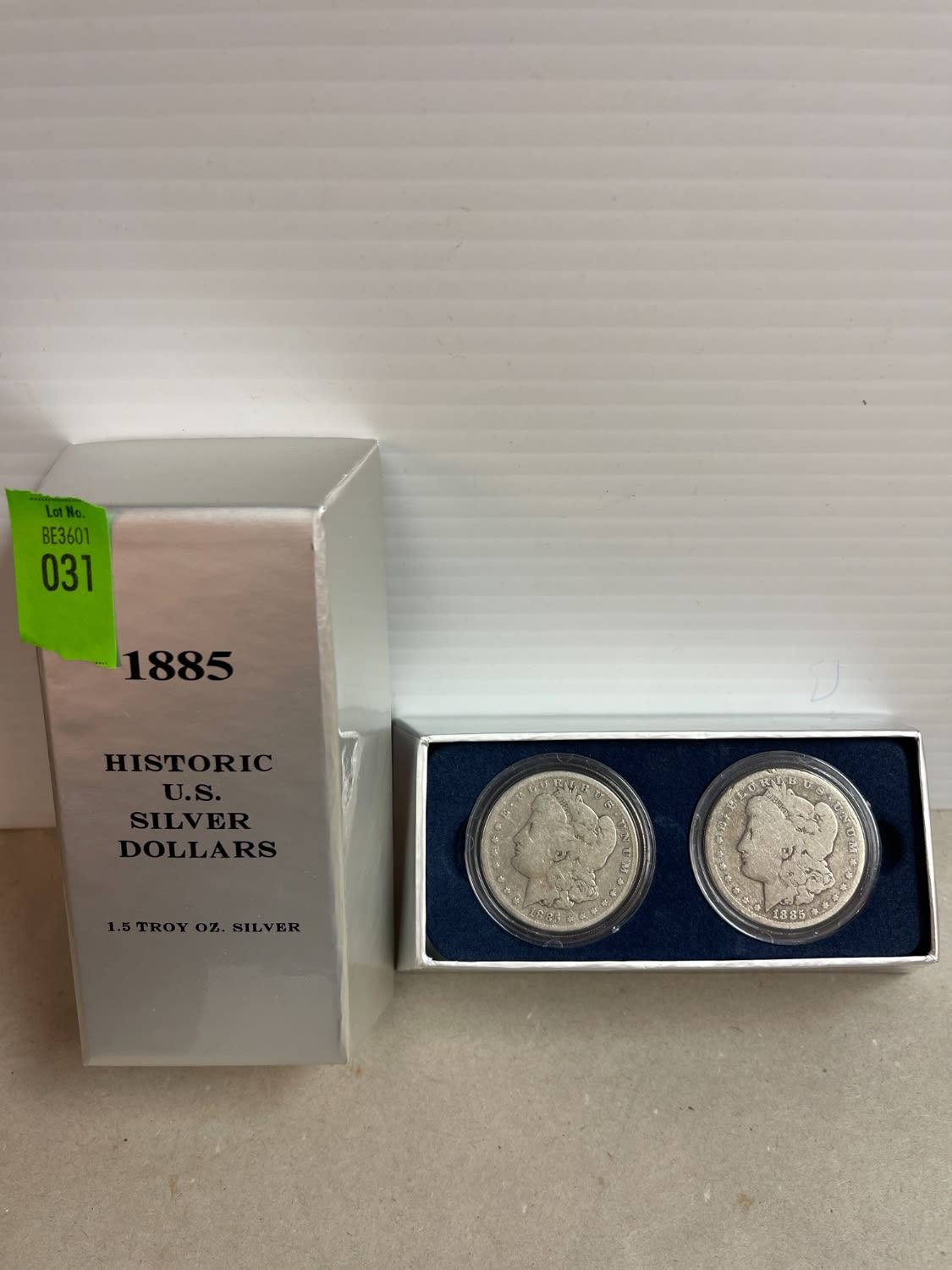 2 1885 Historic U.S. Silver Dollars. . This is from a lifetime private collection , owner is in his 80's. . This is from a lifetime private collection , owner is in his 80's.