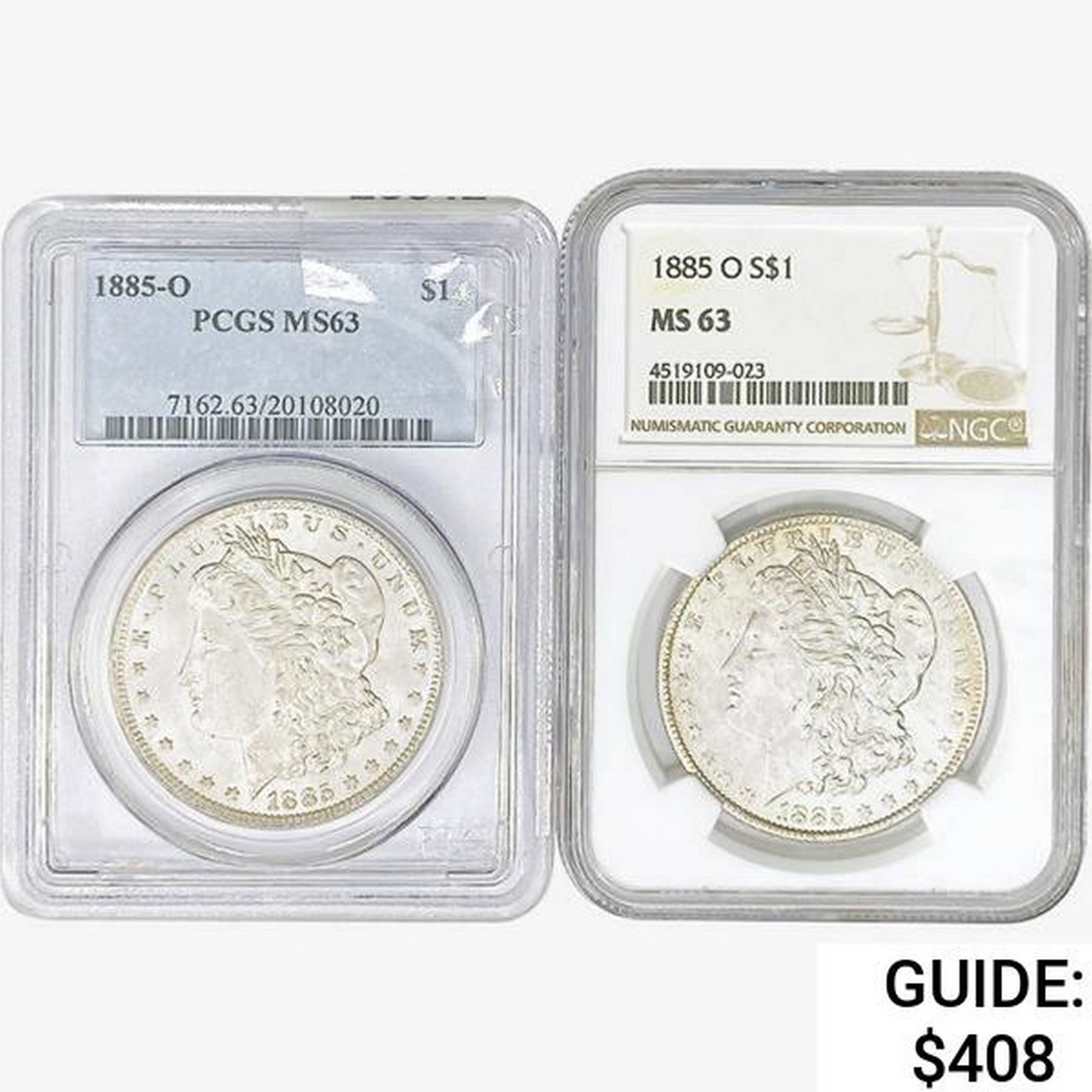 [2] 1885-O Morgan Silver Dollars PCGS MS63