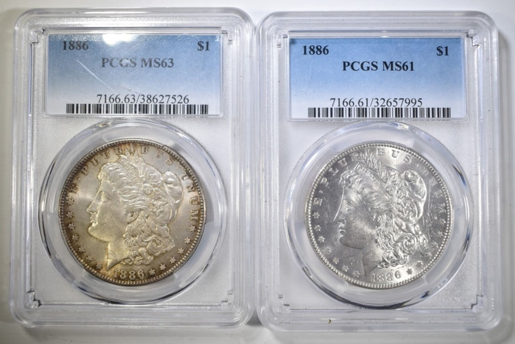 2- 1886 MORGAN DOLLARS, BOTH PCGS MS-61