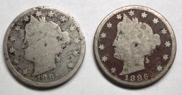 2 1886 V nickels AG